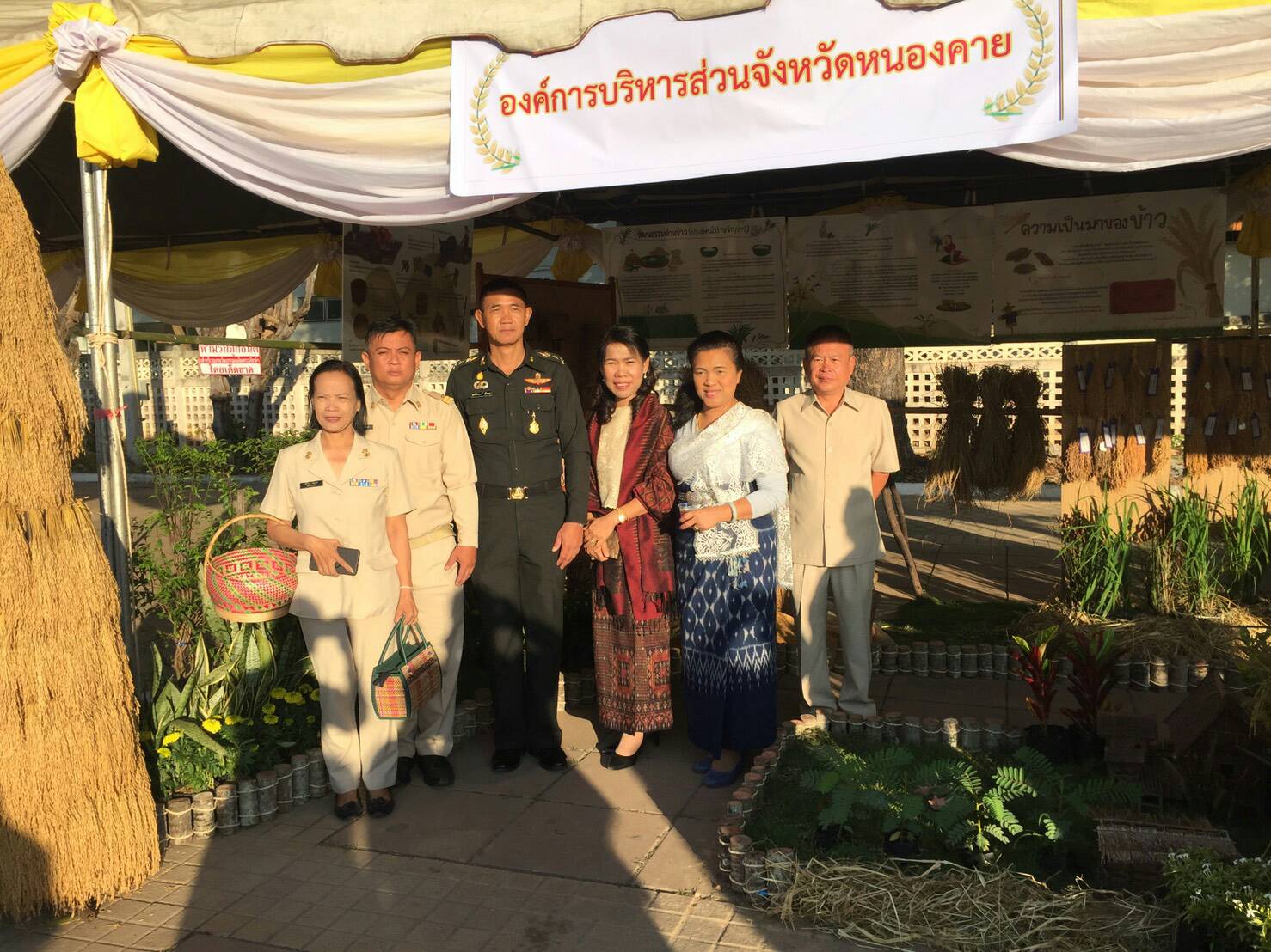 ? นางชะตา ธุลีจันทร์ พัฒนาการจังหวัดหนองคาย ร่วมทำบุญตักบาตรข้าวใหม่ และชมนิทรรศการสืบสานวัฒนธรรม วิถีชีวิตชาวนาและเผยแพร่พันธุ์ข้าวไทย เนื่องในการจัดงานเทศกาลข้าวใหม่ ประจำปี 2560 จังหวัดหนองคาย