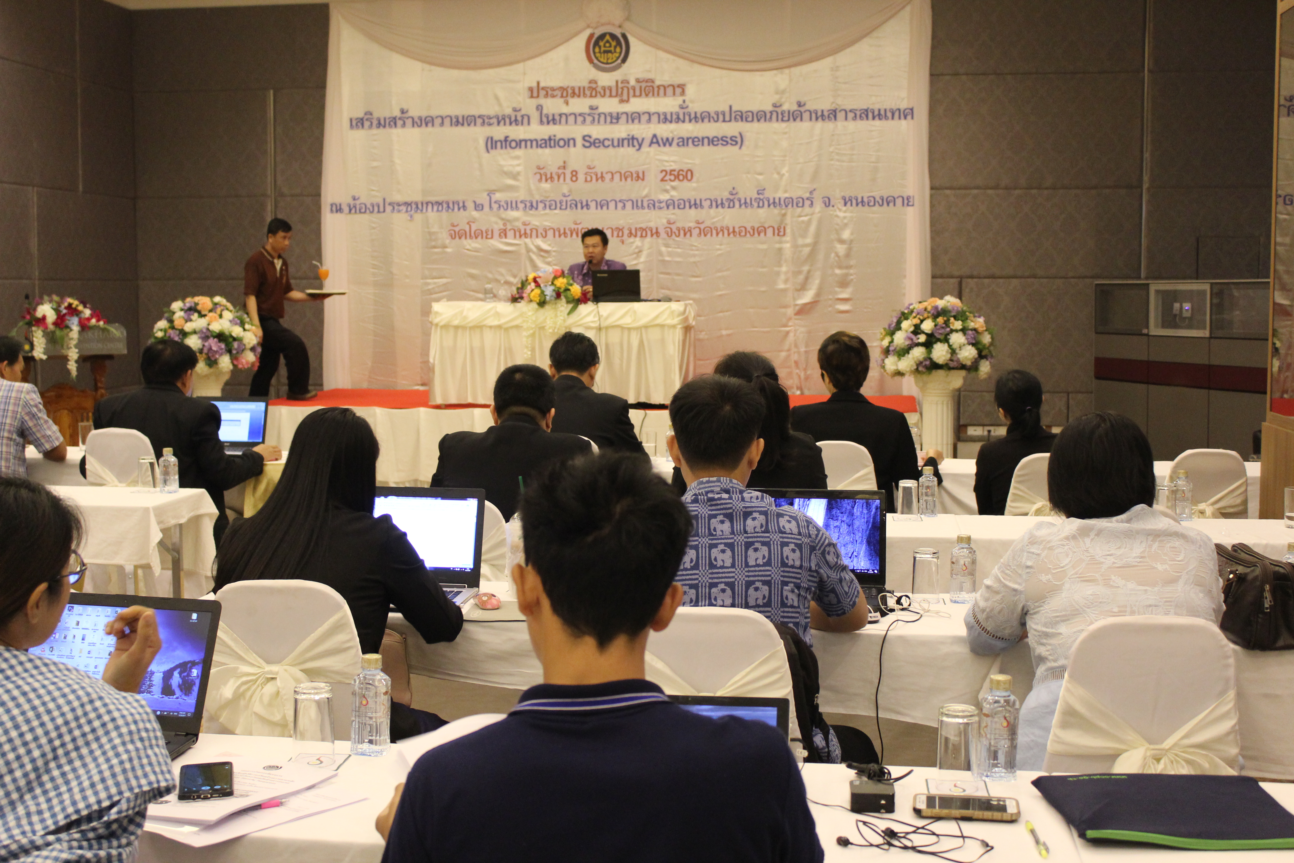 ? วัตถุประสงค์เพื่อเพื่อให้เจ้าหน้าที่พัฒนาชุมชนจังหวัดหนองคายมีความรู้ความเข้าใจในการรักษาความมั่นคงปลอดภัยด้านสารสนเทศและมีแนวทางในการรักษาความมั่นคงปลอดภัยด้านสารสนเทศ จัดขึ้น ณ โรงแรมรอยัล นาคารา และคอนเวนชั่นเซนเตอร์ อำเภอเมืองฯ จังหวัดหนองคาย