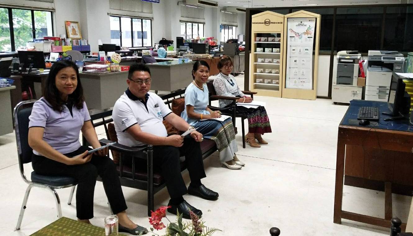 ?นางชะตา ธุลีจันทร์ พัฒนาการจังหวัดหนองคาย นายวรากร เจียรเสริมสิน ประธานสมาพันธ์ SME จังหวัดหนองคาย และเจ้าหน้าที่ผู้รับผิดชอบ ร่วมรับฟังการประชุมผ่านระบบวีดีทัศน์ทางไกลเพื่อสร้างความรู้ความเข้าใจในกรอบแนวทางการดำเนินงานส่งเสริมช่องทางการตลาดสำหรับศูนย์สาธิตการตลาดและตลาดประชารัฐ โดยมีนายโชคชัย แก้วป่อง รองอธิบดีกรมการพัฒนาชุมชนเป็นประธานในการประชุมชี้แจง