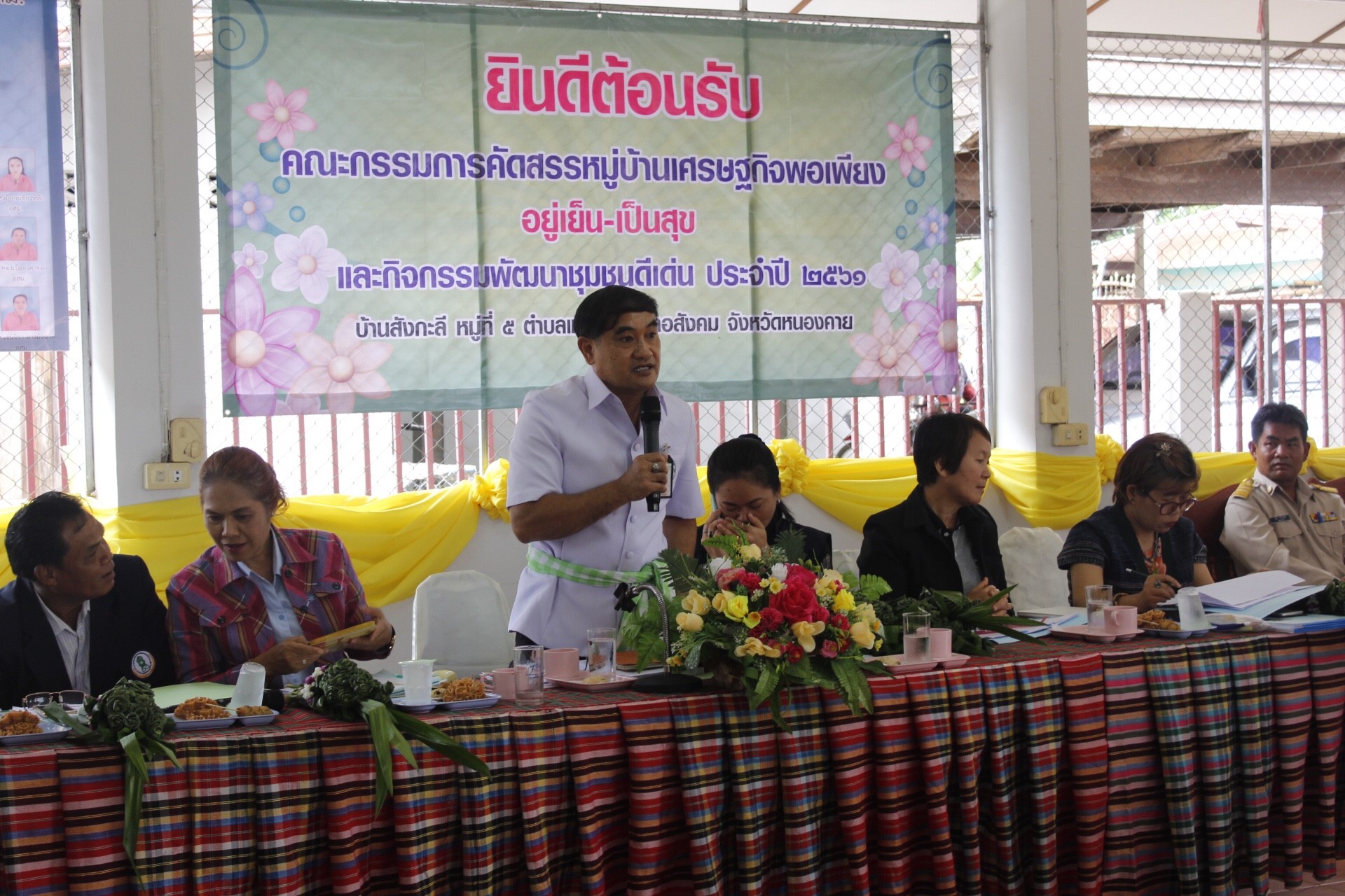 ? นายรณชัย จิตรวิเศษ ผู้ว่าราชการจังหวัดหนองคาย มอบหมายให้คณะกรรมการ นำโดยนายสมปอง จันทพันธ์ รองนายแพทย์สาธารณสุขจังหวัดหนองคาย ลงพื้นที่พิจารณาคัดเลือกหมู่บ้านเศรษฐกิจพอเพียง “อยู่เย็น เป็นสุข” กิจกรรมพัฒนาชุมชนดีเด่น ระดับจังหวัด ตามโครงการเชิดชูเกียรติผู้นำเครือข่ายพัฒนาชุมชนดีเด่น 2561 รวม 4 ประเภท ได้แก่