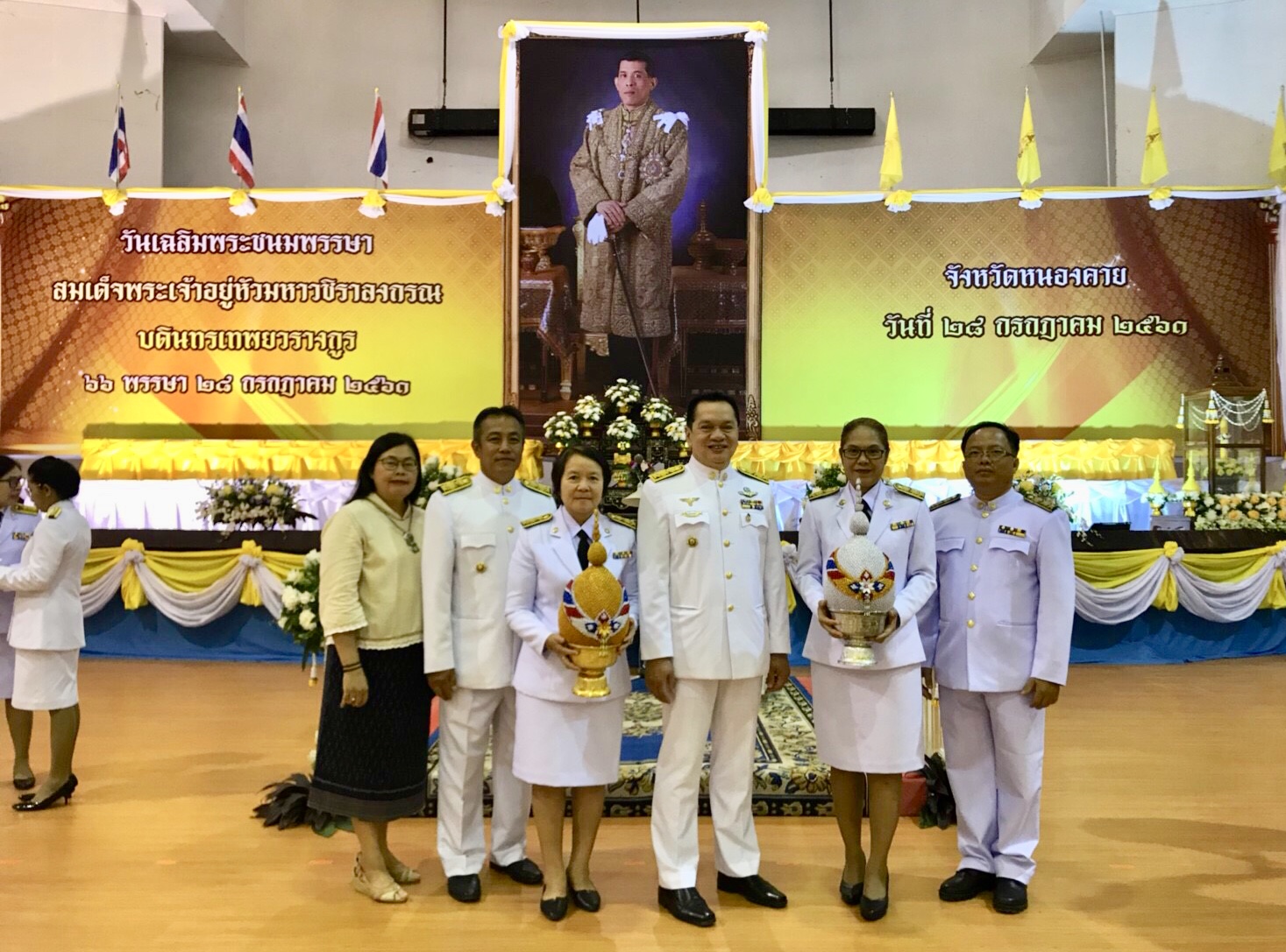 ?นายรณชัย จิตรวิเศษ ผู้ว่าราชการจังหวัดหนองคาย เป็นประธานในพิธีถวายเครื่องราชสักการะ และพิธีจุดเทียนถวายพระพรชัยมงคล สมเด็จพระเจ้าอยู่หัวมหาวชิราลงกรณ บดินทรเทพยวรางกูร เนื่องในวันเฉลิมพระชนมพรรษา 28 กรกฎาคม 2561
