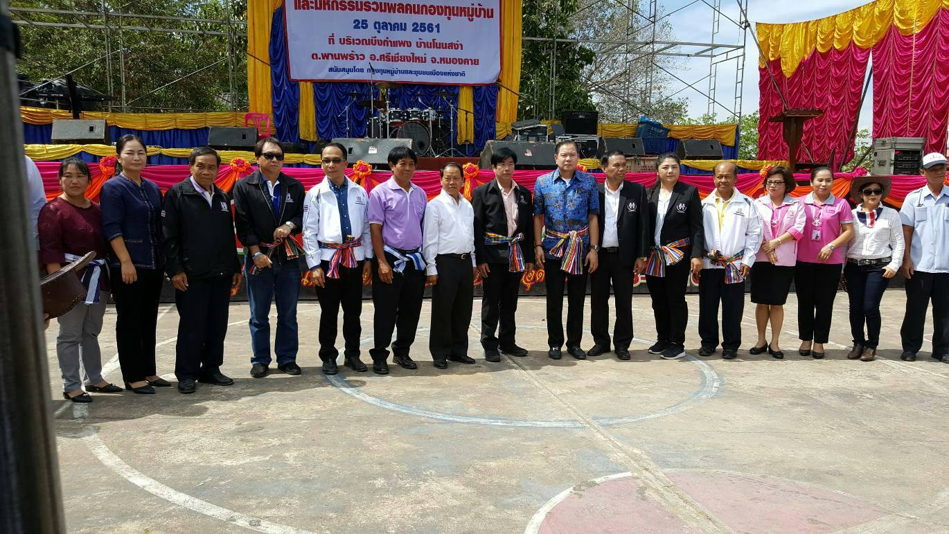 ? ^^หนองคาย เมืองบั้งไฟพญานาค^^ วันที่ 25 ตุลาคม 2561 เวลา 10.00 น. ณ บึงกำแพง บ้านโนนสง่า หมู่ที่ 8 ต.พานพร้าว อ.ศรีเชียงใหม่ จ.หนองคาย? คณะกรรมการเครือข่ายกองทุนหมู่บ้านจังหวัดหนองคาย จัดมหกรรม “รวมพล คนกองทุนหมู่บ้านจังหวัดหนองคาย” โดยนายสมเกียรติ ตระกูลฟาร์มธวัช รองนายกองค์การบริหารส่วนจังหวัดหนองคาย เป็นประธานในพิธีเปิดงาน และเปิดโครงการแหล่งท่องเที่ยวเชิงอนุรักษ์ ล่องแพบึงกำแพง โดยในงานได้รับเกียรติจากนายนที ขลิบทอง ผู้อํานวยการสํานักงานกองทุนหมู่บ้าน และชุมชนเมืองแห่งชาติ พบปะและมอบนโยบายให้กับเครือข่ายกองทุนหมู่บ้านฯ จังหวัดหนองคายด้วย? ในการนี้ นายวทัญญู แสนใจวุฒิ พัฒนาการจังหวัดหนองคาย มอบหมายให้นางณิชชา มณฑีรรัตน์ ผู้ช่วยหัวหน้ากลุ่มงานยุทธศาสตร์การพัฒนาชุมชน เข้าร่วมงานดังกล่าวด้วยภาพ/ข่าว ณิชชา มณฑีรรัตน์