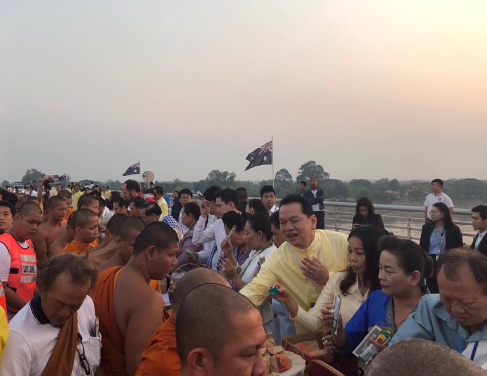 พจ.หนองคาย ร่วมกิจกรรมตักบาตรสองแผ่นดิน ในงานฉลองวันครบรอบ 25 ปี สะพานมิตรภาพไทย – ลาว แห่งที่ 1