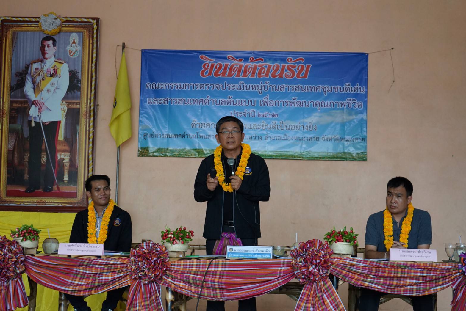 ?ในการนี้นายวทัญญู แสนใจวุฒิ พัฒนาการจังหวัดหนองคาย พร้อมด้วยหัวหน้าส่วนราชการอำเภอ ผู้นำท้องถิ่น ผู้นำชุมชนและประชาชน ร่วมต้อนรับและนำเสนอผลการดำเนินในการประเมินฯ ดังกล่าว
