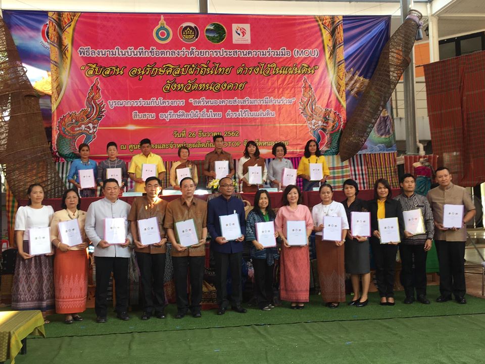 ? สำหรับการจัดพิธีลงนามในบันทึกข้อตกลงว่าด้วยการประสานความร่วมมือ โครงการสืบสานอนุรักษ์ศิลป์ผ้าถิ่นไทย ดำรงไว้ในแผ่นดิน ครั้งนี้ เพื่อสืบสานพระราชปณิธานสมเด็จพระนางเจ้าสิริกิติ์ พระบรมราชินีนาถ พระบรมราชชนนี พันปีหลวง ในเรื่องการอนุรักษ์ภูมิปัญญาท้องถิ่นของไทย เพื่อเผยแพร่ผ้าไทยดึงอัตลักษณ์ผ้าทอของจังหวัด ส่งเสริมและพัฒนาคุณภาพผลิตภัณฑ์ผ้าให้ตรงกับความต้องการของตลาด อนุรักษ์ผ้าไทยให้คงอยู่คู่แผ่นดิน เพิ่มรายได้ให้ผู้ประกอบการ OTOP ในประเภทผ้าและเครื่องแต่งกายและเชิญชวนให้สตรีทุกภาคส่วนในจังหวัดหนองคาย แต่งกายด้วยชุดผ้าไทย