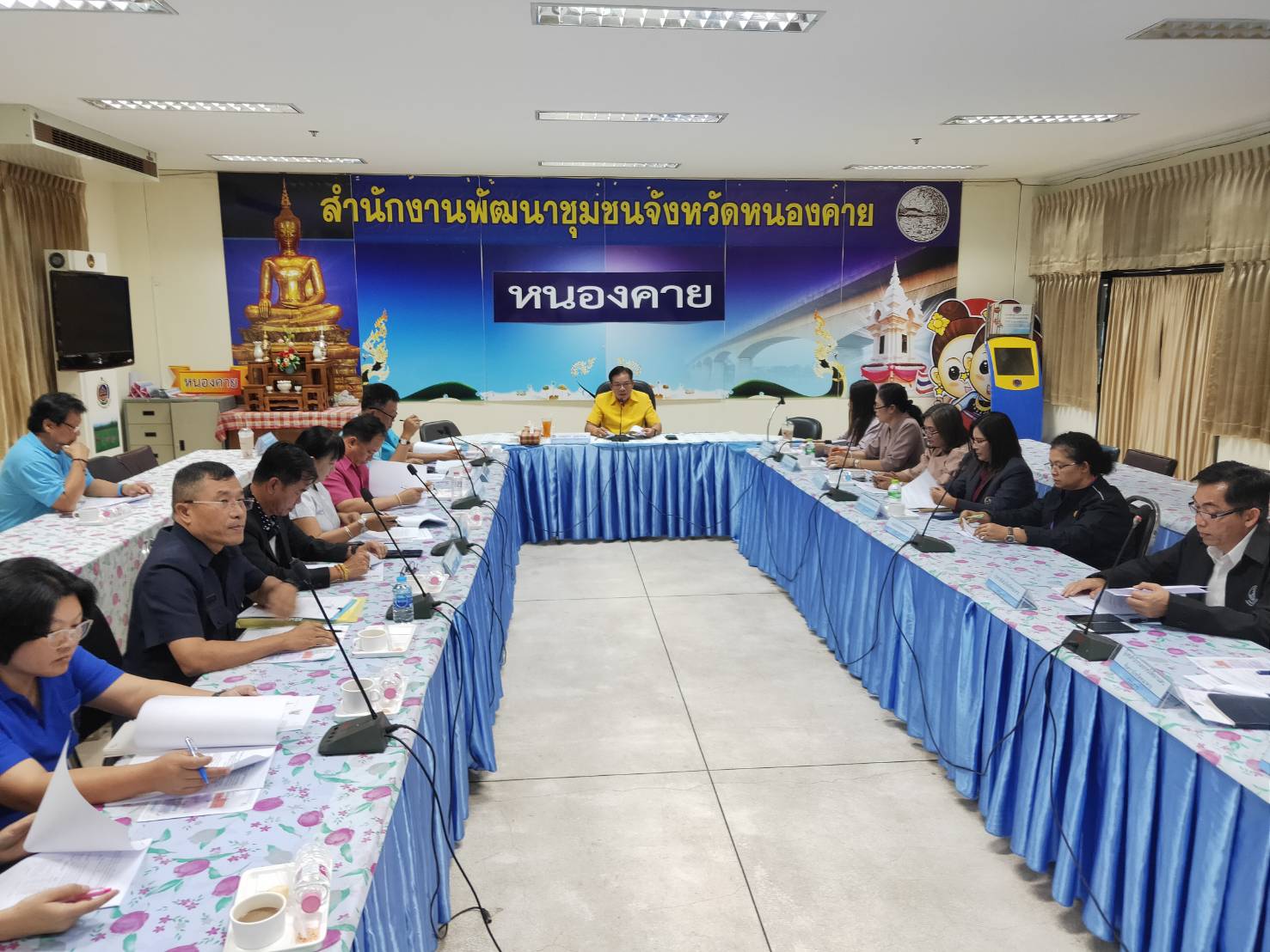 ? ในการนี้ นางสาวบุศราวรรณ เรืองช่อ นักวิชาการพัฒนาชุมชนชำนาญการพิเศษ รักษาราชการแทนพัฒนาการจังหวัดหนองคาย มอบหมายให้ นายสมาน นวลจันทร์ หัวหน้ากลุ่มงานส่งเสริมการพัฒนาชุมชน และหัวหน้ากลุ่มฯ หัวหน้าฝ่ายฯ ร่วมประชุม