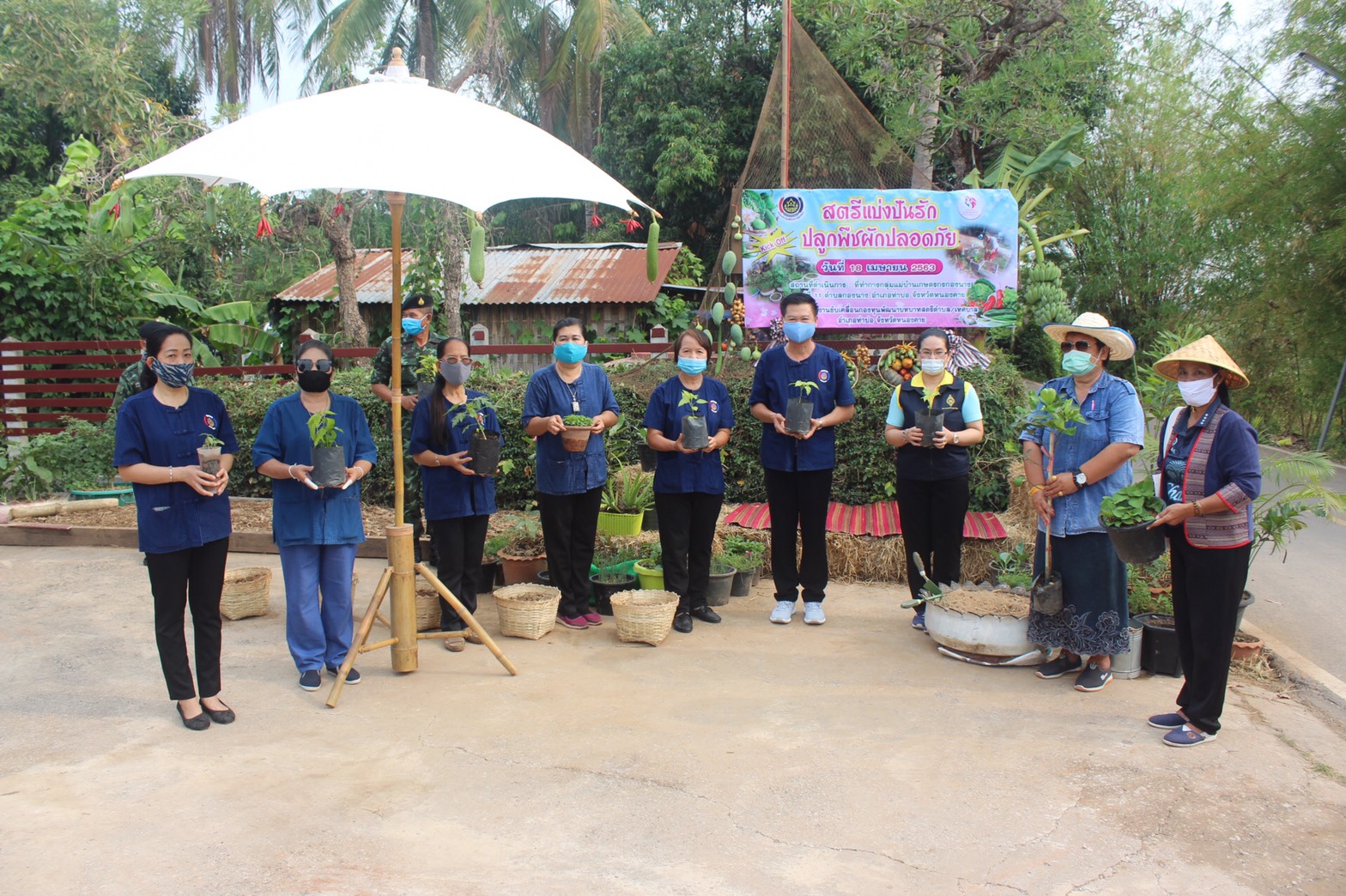 นายไพโรจน์ โสภาพร พัฒนาการจังหวัดหนองคาย เป็นประธานในพิธีเปิด โครงการ “สตรีแบ่งปันรัก ปลูกพืชผักปลอดภัย” ณ ที่ทำการกลุ่มแม่บ้านเกษตรกองนาง อำเภอท่าบ่อ จังหวัดหนองคาย พร้อมเจ้าหน้าที่ พช. คณะทำงานขับเคลื่อนกองทุนพัฒนาบทบาทสตรี สมาชิกกองทุนพัฒนาบทบาทสตรี และผู้นำชุมชน ได้ร่วมกันนำเมล็ดพันธุ์ผักต่างๆ มาร่วมกันปลูกในแปลงตัวอย่างและให้มีการขยายผลไปทุกครัวเรือนทุกชุมชน เพื่อเป็นการลดค่าใช้จ่ายในครัวเรือน มีอาหารที่มั่งคงในอนาคต ตามโครงการปฎิบัติการ 90 วัน “ปลูกผักสวนครัว เพื่อความมั่นคงทางอาหาร” ต่อสู้กับภัยวิกฤต COVID-19