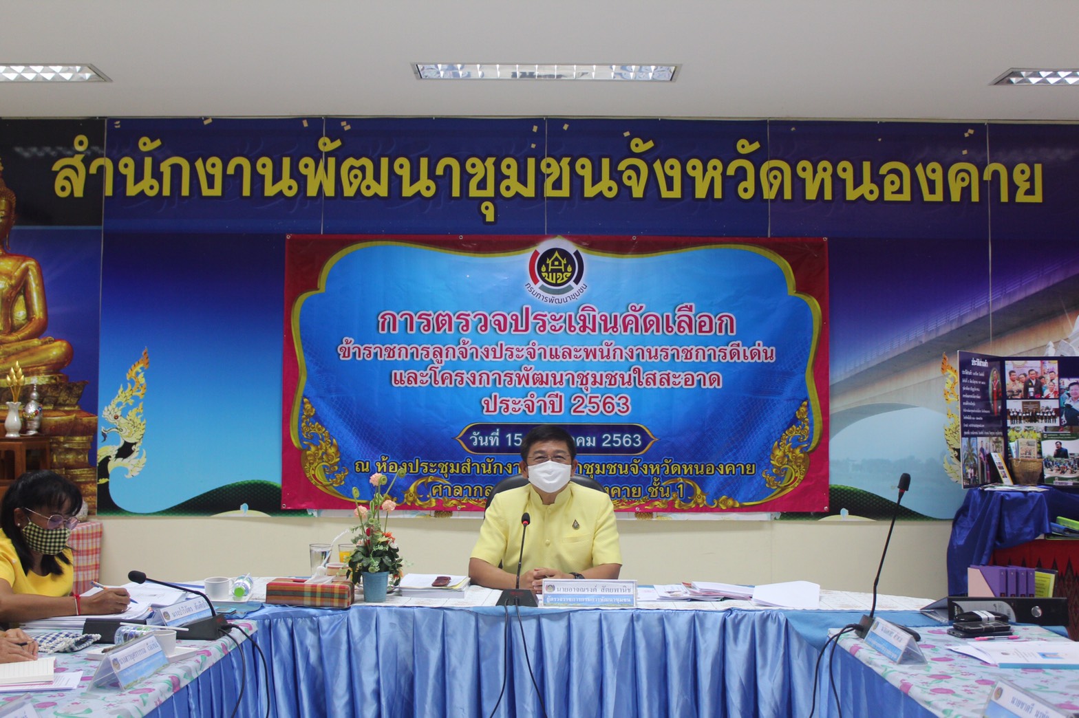 ? นายอาจณรงค์ สัตยพานิช ผู้ราชการราชการกรมการพัฒนาชุมชน เป็นประธานการตรวจประเมินคัดเลือกข้าราชการ ลูกจ้างประจำ และพนักงานราชการดีเด่น และโครงการพัฒนาชุมชนใสสะอาดดีเด่น ประจำปี 2563 เขตตรวจราชการกลุ่มจังหวัดภาคตะวันออกเฉียงเหนือตอนบน 1 (เลย หนองคาย หนองบัวลำภูก อุดรธานี บึงกาฬ) ณ ห้องประชุมสำนักงานพัฒนาชุมชนจังหวัดหนองคาย