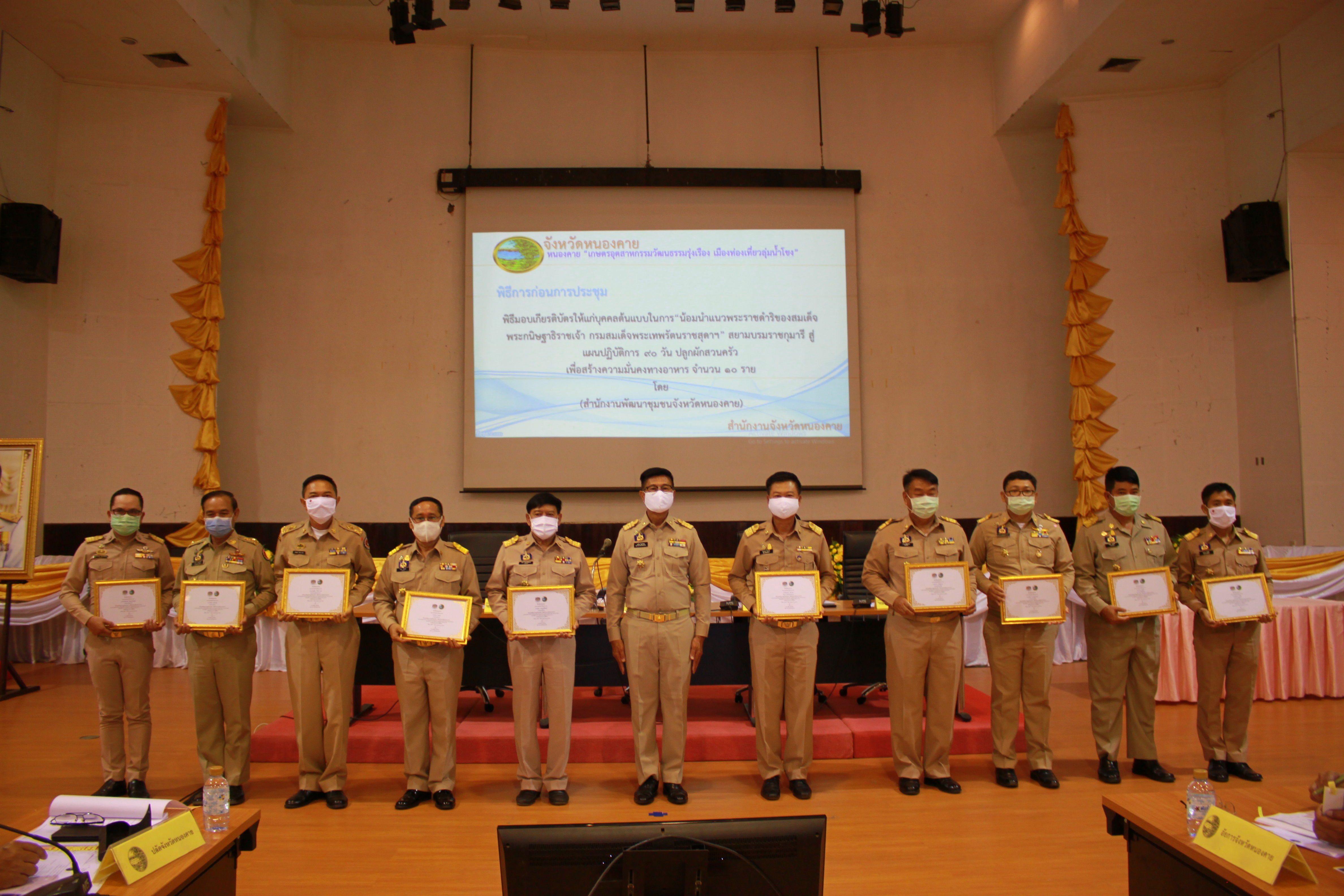 ? โดย สำนักงานพัฒนาชุมชนจังหวัดหนองคาย ได้จัดพิธีมอบเกียรติบัตร ให้แก่บุคคลต้นแบบ ระดับผู้บริหาร ในการ “น้อมนำแนวพระราชดำริของสมเด็จพระกนิษฐาธิราชเจ้า กรมสมเด็จพระเทพรัตนราชสุดาฯ สยามบรมราชกุมารี สู่แผนปฏิบัติการ 90 วัน ปลูกผักสวนครัว เพื่อสร้างความมั่นคงทางอาหาร” จำนวน 10 ราย ได้แก่ นายอำเภอ ทั้ง 9 อำเภอ และพัฒนาการจังหวัดหนองคาย โดยผู้ว่าราชการจังหวัด เป็นประธานในพิธีมอบฯ