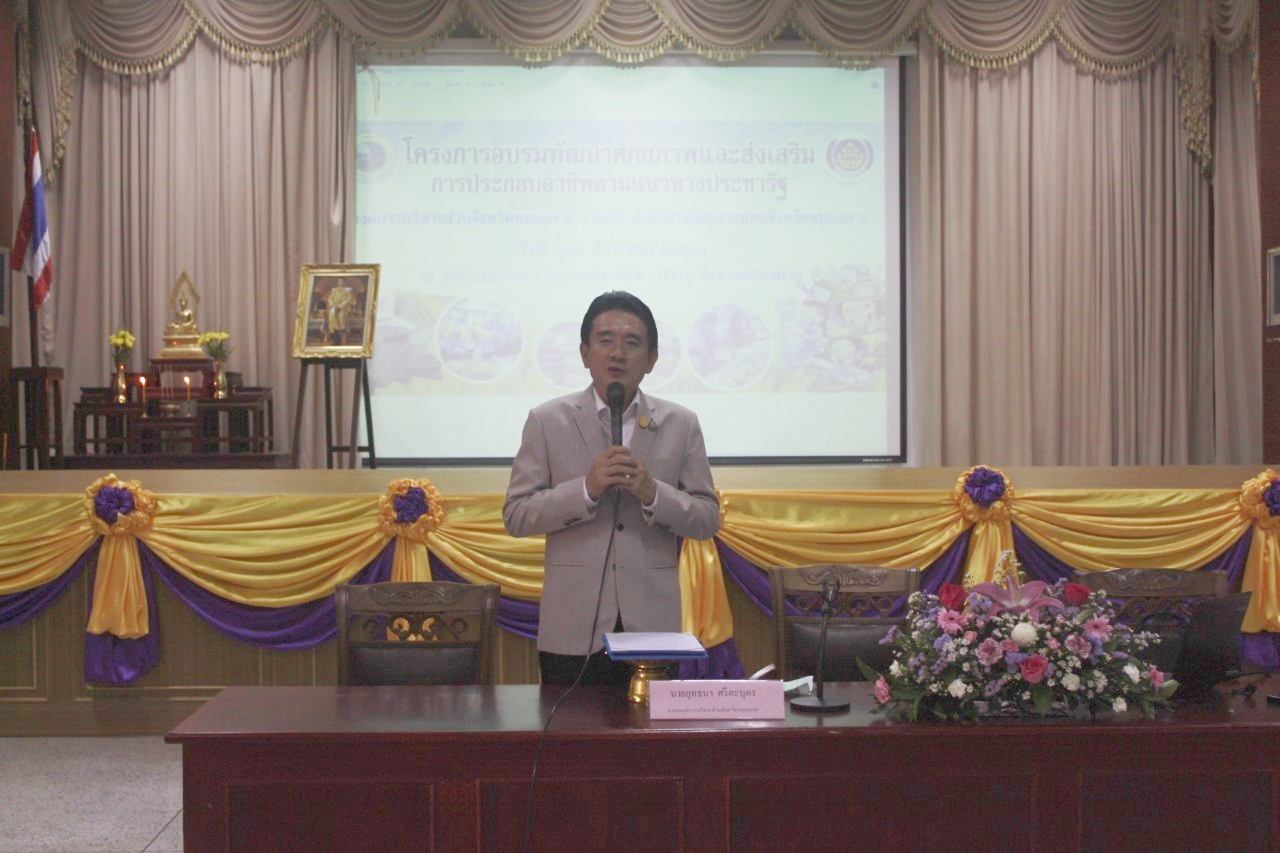 ? จังหวัดหนองคาย โดยสำนักงานพัฒนาชุมชนจังหวัด ร่วมกับ องค์การบริหารส่วนจังหวัดหนองคาย ดำเนินโครงการอบรมพัฒนาศักยภาพและส่งเสริมการประกอบอาชีพตามแนวทางประชารัฐ กิจกรรมพัฒนาศักยภาพและส่งเสริมการประกอบอาชีพผู้นำต้นแบบ “โคก หนอง นา โมเดล” ตามแนวทางประชารัฐ