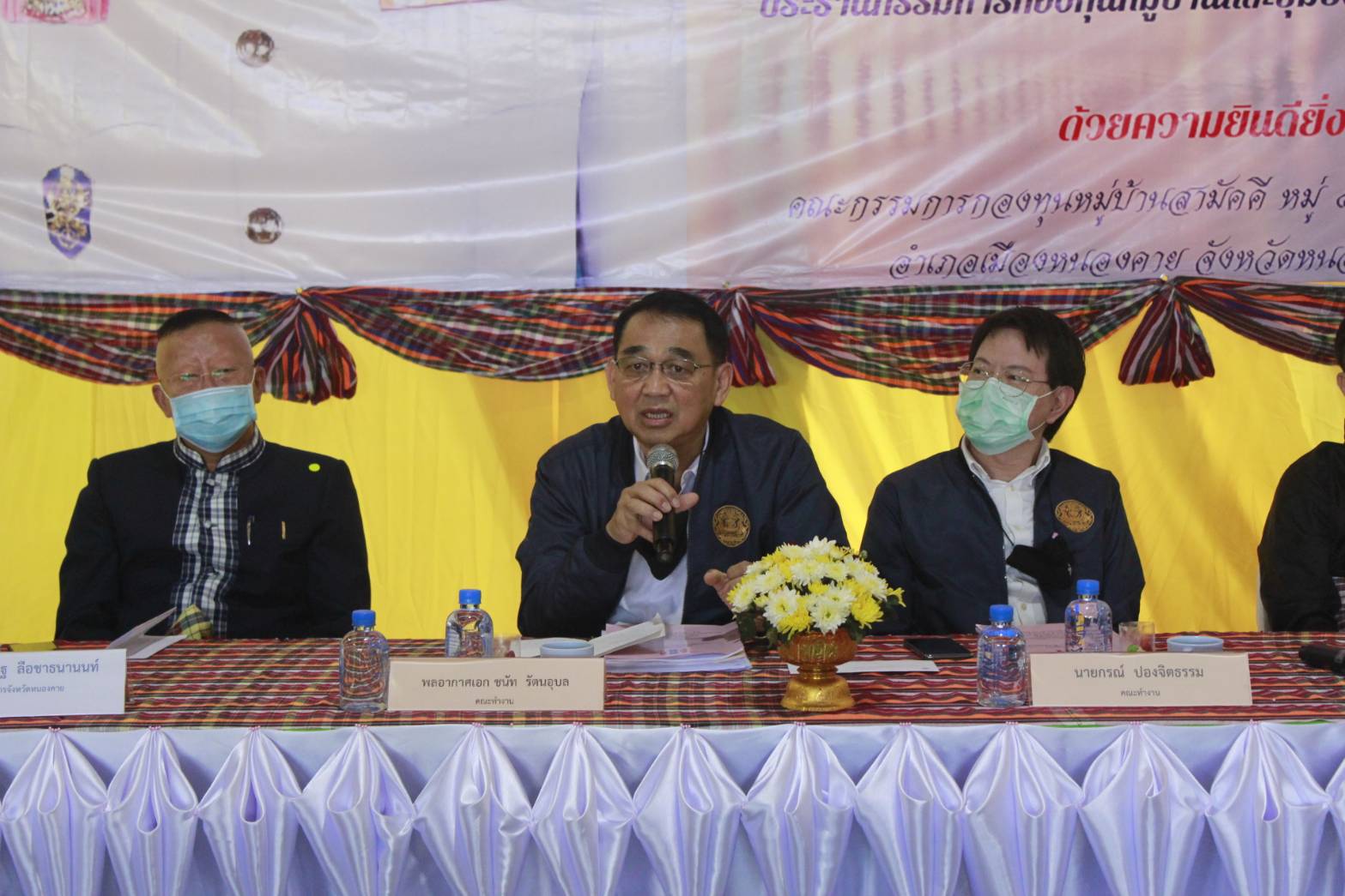 นายประเสริฐ ลือชาธนนานนท์ ผู้ว่าราชการจังหวัดหนองคาย ให้การต้อนรับและนำ พลอากาศเอก ชนัท รัตนอุบล หัวหน้าคณะทำงานของ นายสุพัฒนพงษ์ พันธ๋มีเชาว์ รองนายกรัฐมนตรี และคณะ ลงพื้นที่ติดตาม และเยี่ยมชมผลการดำเนินงานกองทุนหมู่บ้านและชุมชนเมือง บ้านสามัคคี หมู่ 5 ตำบลหาดคำ อำเภอเมืองหนองคาย โดยมี นางสาวสิริมา วัฒโน รองผู้ว่าราชการจังหวัดหนองคาย หัวหน้าส่วนราชการ ร่วมติดตามการดำเนินงานกองทุนหมู่บ้าน ครั้งนี้ด้วย