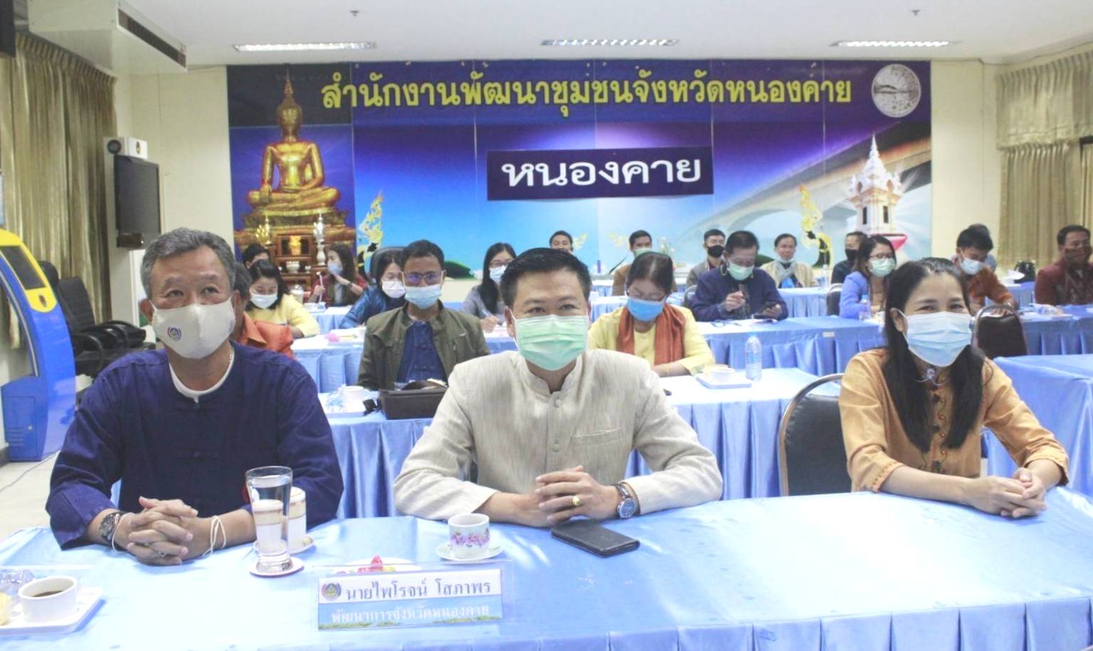 ✨ โครงการฝึกอบรมพัฒนากรระหว่างประจำการ ด้านบริหารการเปลี่ยนแปลง ประจำปีงบประมาณ พ.ศ. 2564 กำหนดฝึกอบรม 3 วัน ระหว่างวันที่ 28 – 30 มกราคม 2564 กลุ่มเป้าหมายคือ พัฒนากรในสังกัดสำนักงานพัฒนาชุมชนอำเภอ ในพื้นที่ 9 อำเภอของจังหวัดหนองคาย รวม 36 คน และเจ้าหน้าที่สำนักงานพัฒนาชุมชนจังหวัดหนองคาย 1 คน อำนวยความสะดวกและประสานการถ่ายทอดสัญญาณจากกรมการพัฒนาชุมชน ผ่านแอปพลิเคชั่น Zoom โดยมีนายสุทธิพงษ์ จุลเจริญ อธิบดีกรมการพัฒนาชุมชน เป็นประธานในการเปิดการฝึกอบรม และมอบแนวนโยบาย “บทบาทกรมการพัฒนาชุมชนกับการพัฒนาคุณภาพชีวิตตามหลักทฤษฎีใหม่ประยุกต์สู่ โคก หนอง นา โมเดล”