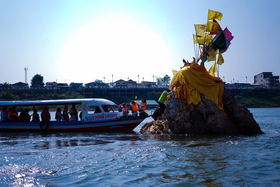 จุดที่ 1 สักการะพระธาตุหล้าหนอง (ลงเรือไหว้พระธาตุกลางน้ำ)