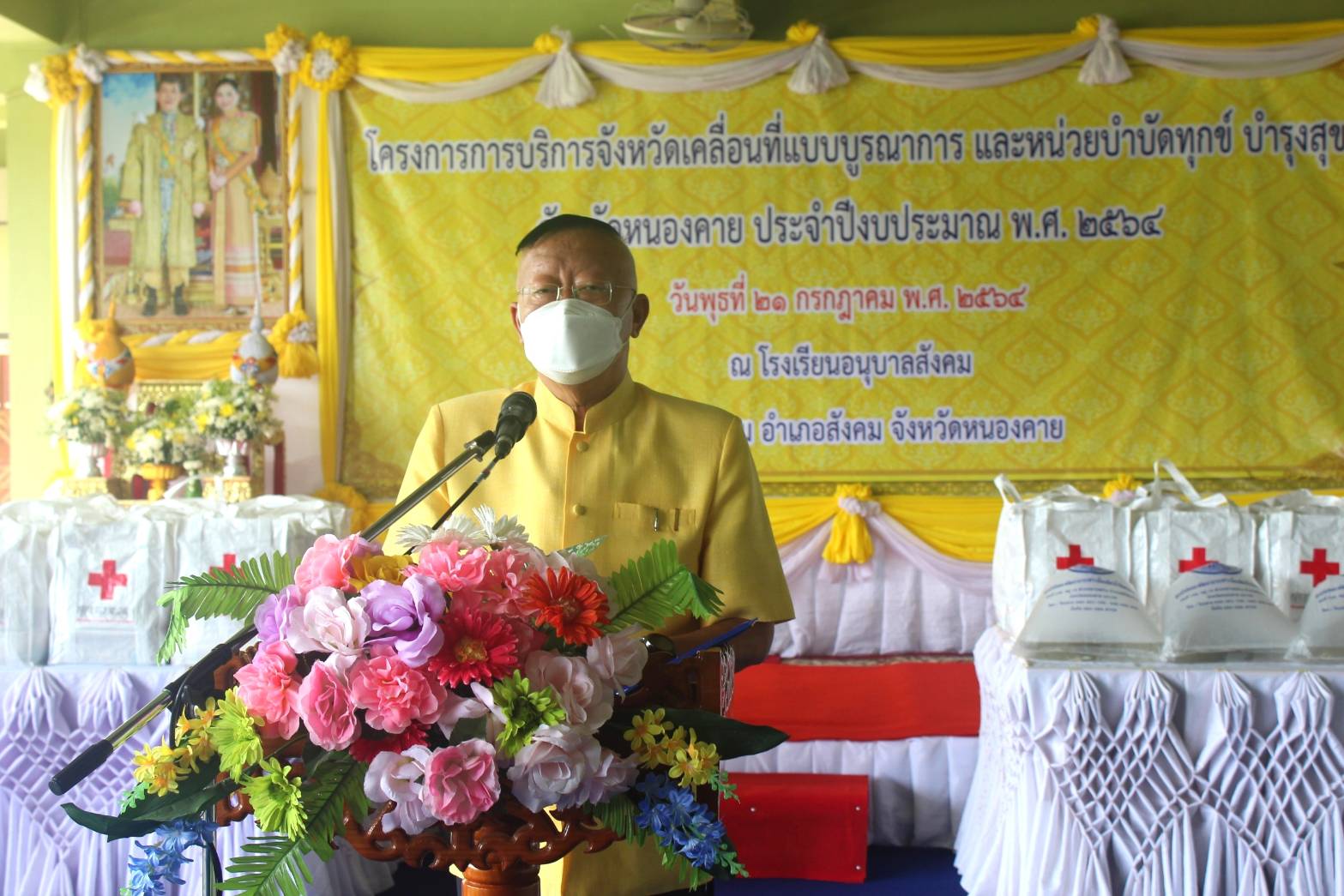 ?? วันที่ 21 กรกฎาคม 2564 เวลา 09.30 น. นายประเสริฐ ลือชาธนานนท์ ผู้ว่าราชการจังหวัดหนองคาย เป็นประธานในโครงการการบริการจังหวัดเคลื่อนที่แบบบูรณาการและหน่วยบำบัดทุกข์ บำรุงสุข จังหวัดหนองคาย พร้อมด้วย หัวหน้าส่วนราชการ กำนัน ผู้ใหญ่บ้าน และประชาชน เข้าร่วมโครงการฯครั้งนี้ ณ บริเวณโรงเรียนอนุบาลสังคม ตำบลสังคม อำเภอสังคม จังหวัดหนองคาย