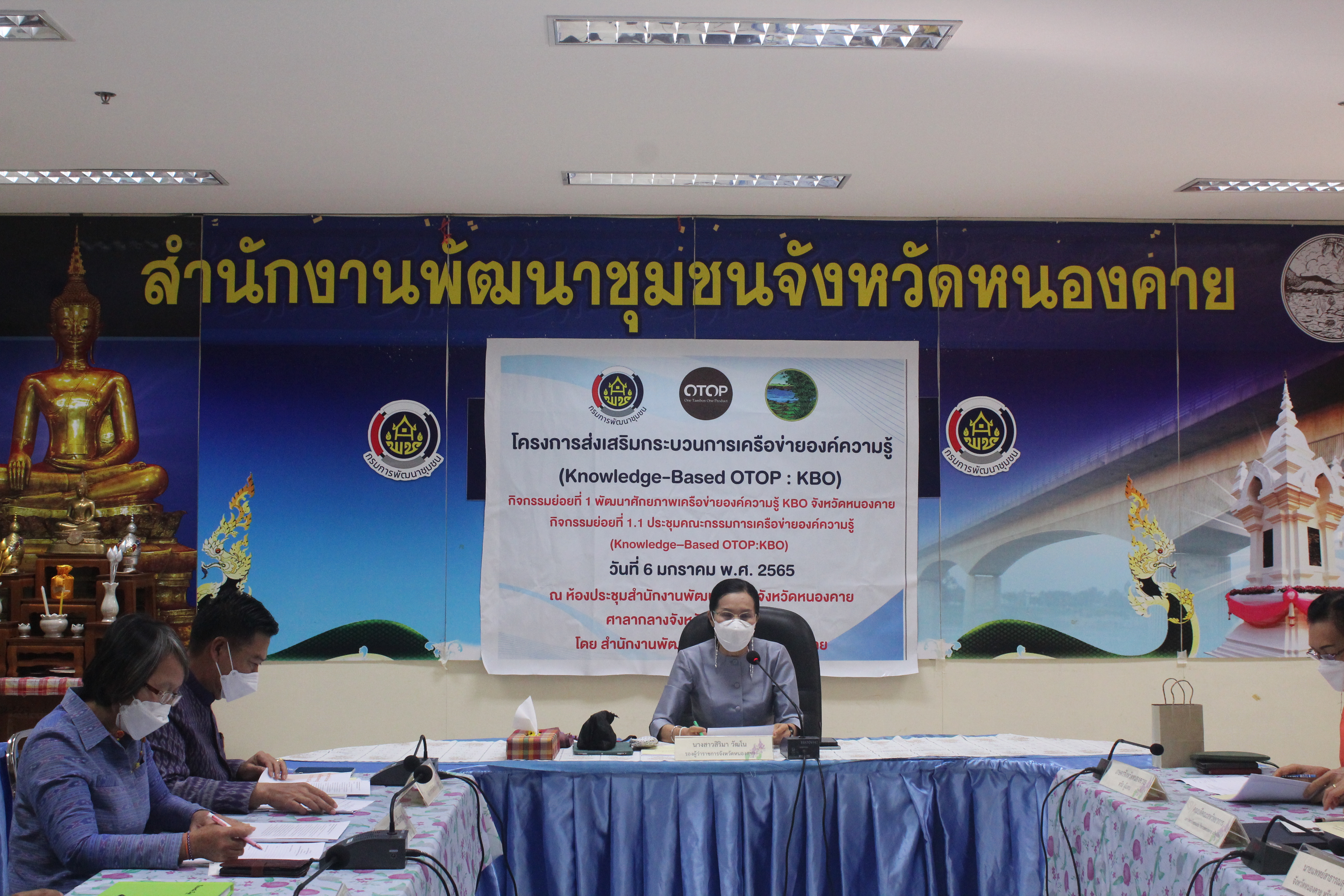 วันที่ 6 มกราคม 2565 เวลา 09.00 น. นางสาวสิริมา วัฒโน รองผู้ว่าราชการจังหวัดหนองคาย เป็นประธานการประชุมคณะกรรมการเครือข่ายองค์ความรู้ (Knowledge–Based OTOP:KBO) ตามโครงการส่งเสริมกระบวนการเครือข่ายองค์ความรู้ (Knowledge – Based OTOP : KBO) กิจกรรมย่อยที่ 1 พัฒนาศักยภาพเครือข่ายองค์ความรู้ KBO จังหวัด ณ ห้องประชุมสำนักงานพัฒนาชุมชนจังหวัดหนองคาย ชั้น 1 ศาลากลางจังหวัดหนองคาย