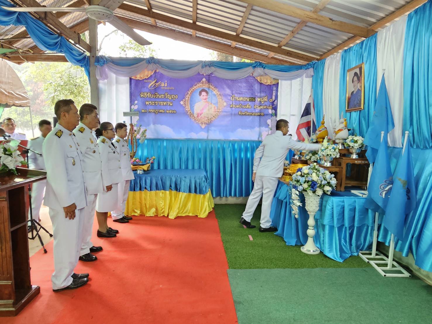 ผู้ว่าราชการจังหวัดหนองคายเป็นประธานพิธีมอบเงินขวัญถุงพระราชทานกองทุนแม่ของแผ่นดิน บ้านดอนขม อำเภอท่าบ่อ