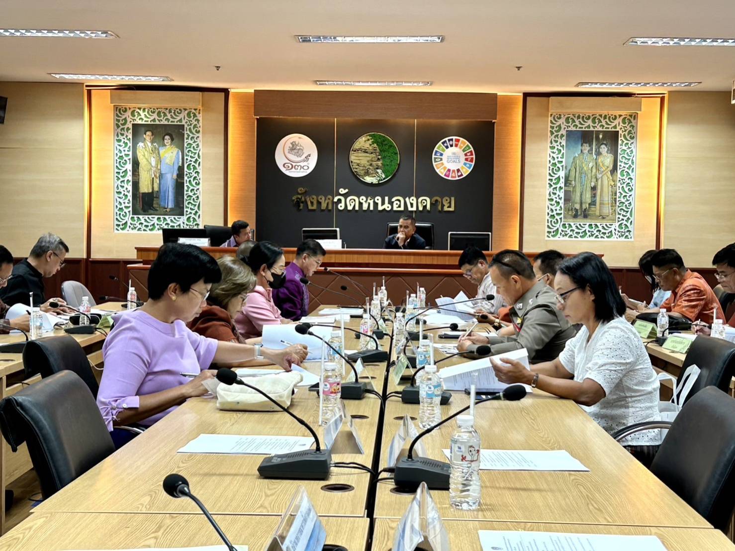 เทวาภิบาล ชั้น 4 ศาลากลางจังหวัดหนองคาย นายราชันย์ ซุ้นหั้ว ผู้ว่าราชการจังหวัดหนองคาย เป็นประธานการประชุมคณะกรรมการบริหารศูนย์อำนวยการขจัดความยากจนและพัฒนาคนทุกช่วงวัยอย่างยั่งยืนตามหลักปรัชญาของเศรษฐกิจ