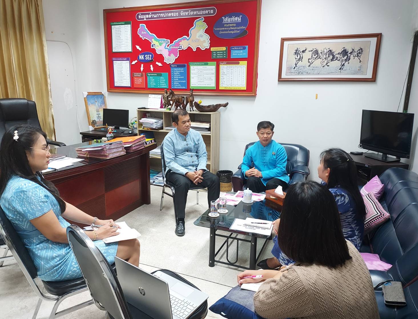 นายประดิษฐ์ นัดทะยาย พัฒนาการจังหวัดหนองคาย พร้อมด้วยนายสุรชาติ ตันติปาลี ผู้อำนวยการกลุ่มงานส่งเสริมการพัฒนาชุมชน ร่วมปรึกษาหารือแนวทางความร่วมมือทางวิชาการร่วมกับมหาวิทยาลัยราชภัฏอุดรธานี โดยคุณกาญจนา มูลอาจ รองผู้อำนวยการ สถาบันวิจัยและพัฒนามหาวิทยาลัยราชภัฏอุดรธานี และคณะ ในหัวข้อดังนี้