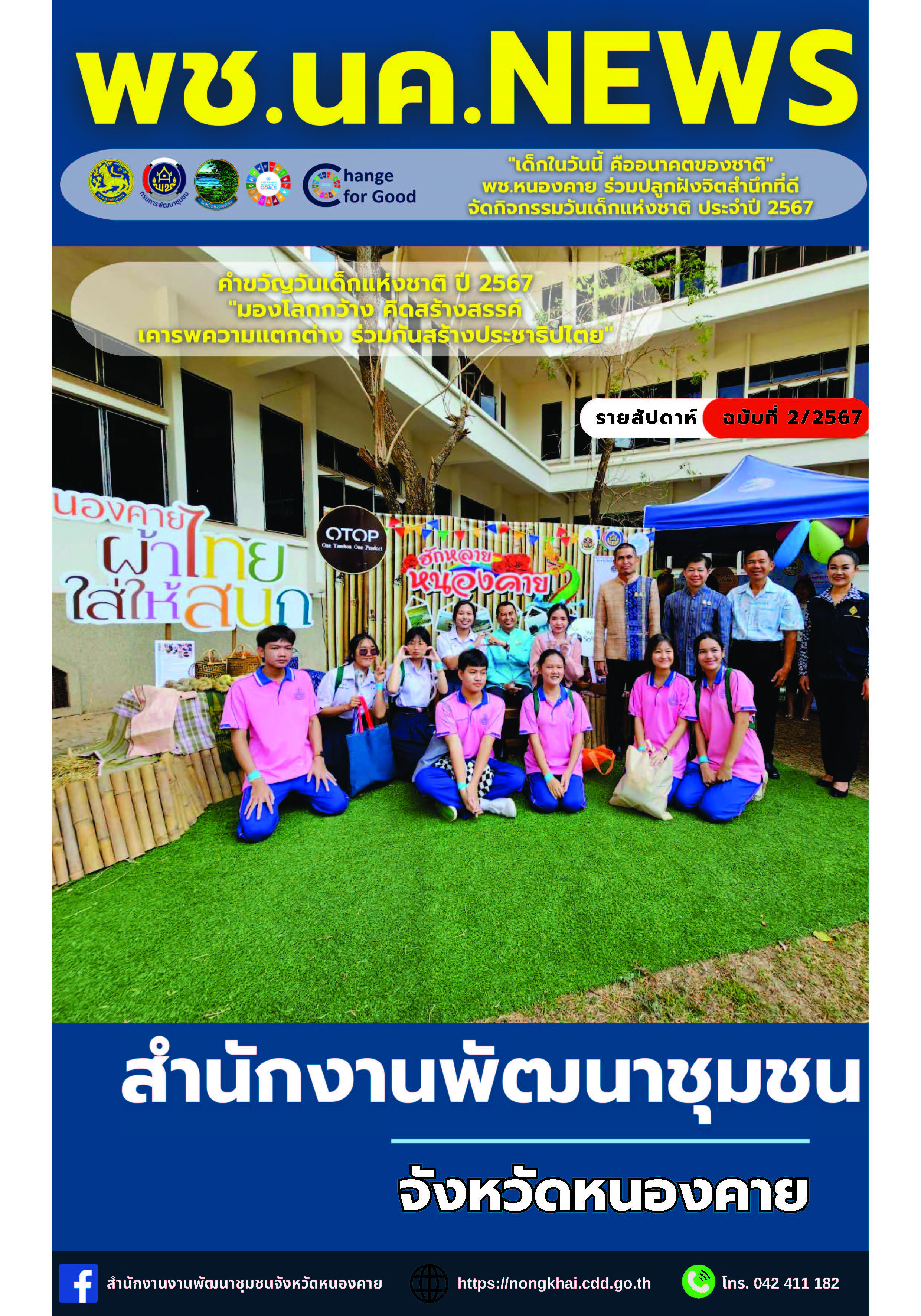 สรุปข่าวพัฒนาชุมชนฅนหนองคาย รายสัปดาห์ ฉบับที่ 2/2567 ในรูปแบบหนังสือพิมพ์ Online ของสำนักงานพัฒนาชุมชนจังหวัดหนองคาย