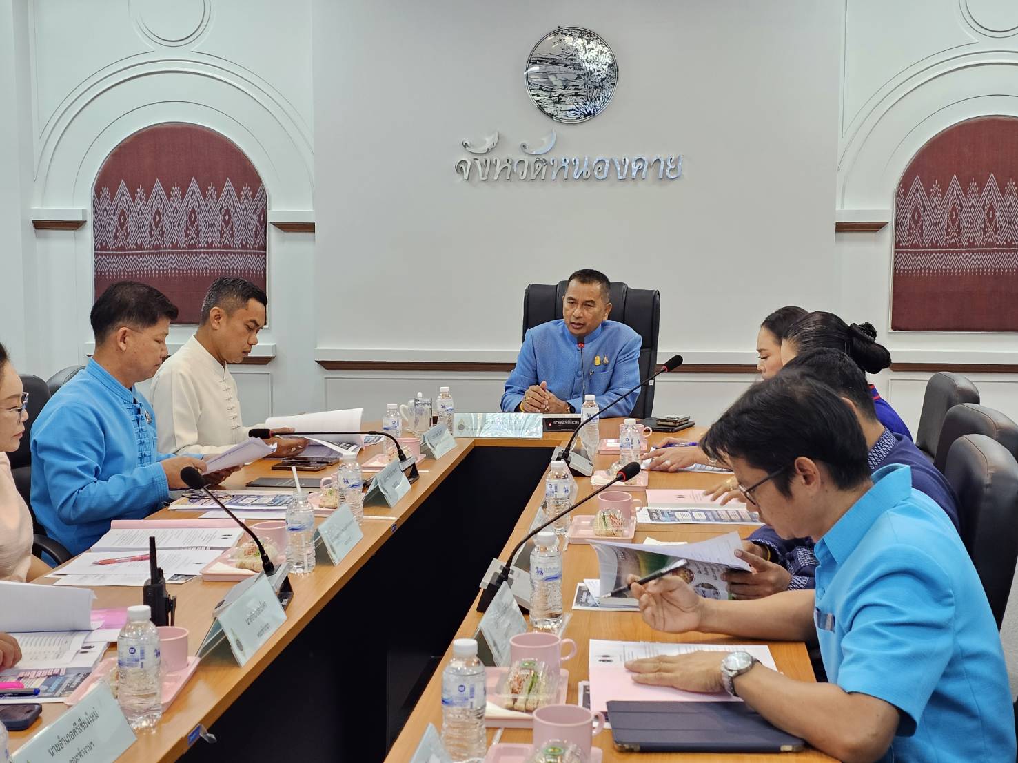 วันที่ 19 มกราคม 2567 เวลา 10.00 น. ณ ห้องประชุมจอมมณี ชั้น 3 ศาลากลางจังหวัดหนองคาย นายราชันย์ ซุ้นหั้ว ผู้ว่าราชการจังหวัดหนองคาย เป็นประธานการประชุมหารือการขับเคลื่อนงานตามภารกิจของสมาคมแม่บ้านมหาดไทย ประจำปีงบประมาณ พ.ศ.2567 โดยมี นายจำลักษ์ กันเพ็ชร์ รองผู้ว่าราชการจังหวัดหนองคาย นางวรรณวิไล กันเพ็ชร์ และ นางอ้อมขวัญ คงทัน รองประธานแม่บ้านมหาดไทยจังหวัดหนองคาย และคณะกรรมการชมรมแม่บ้านมหาดไทยจังหวัดหนองคาย เข้าร่วมการประชุมอย่างพร้อมเพรียง