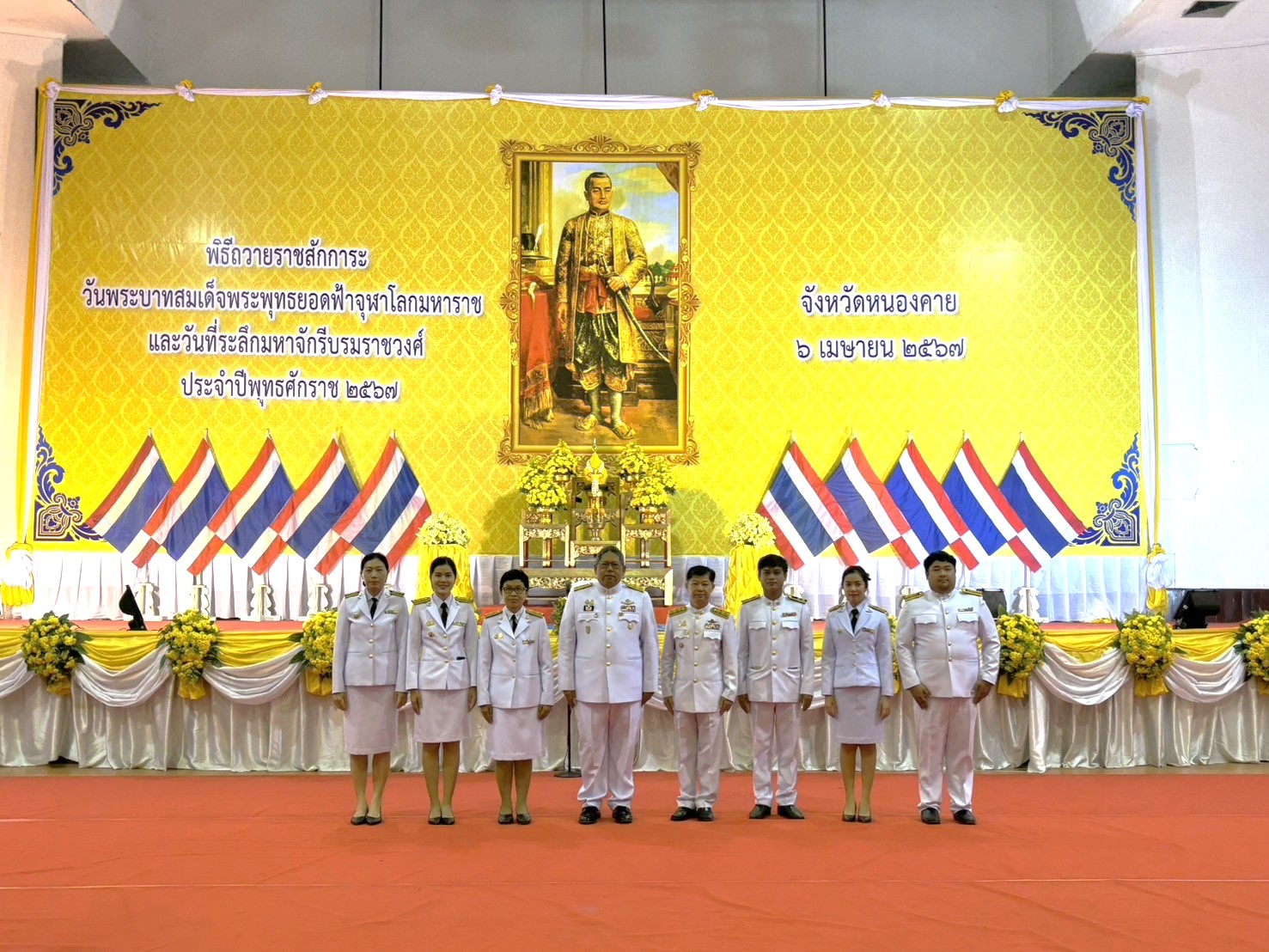 วางพานพุ่มดอกไม้และถวายราชสดุดี เนื่องใน “วันพระบาทสมเด็จพระพุทธยอดฟ้าจุฬาโลกมหาราช และวันที่ระลึกมหาจักรีบรมราชวงศ์” ประจำปีพุทธศักราช 2567 ณ หอประชุมที่ว่าการอำเภอเมืองหนองคาย จังหวัดหนองคาย