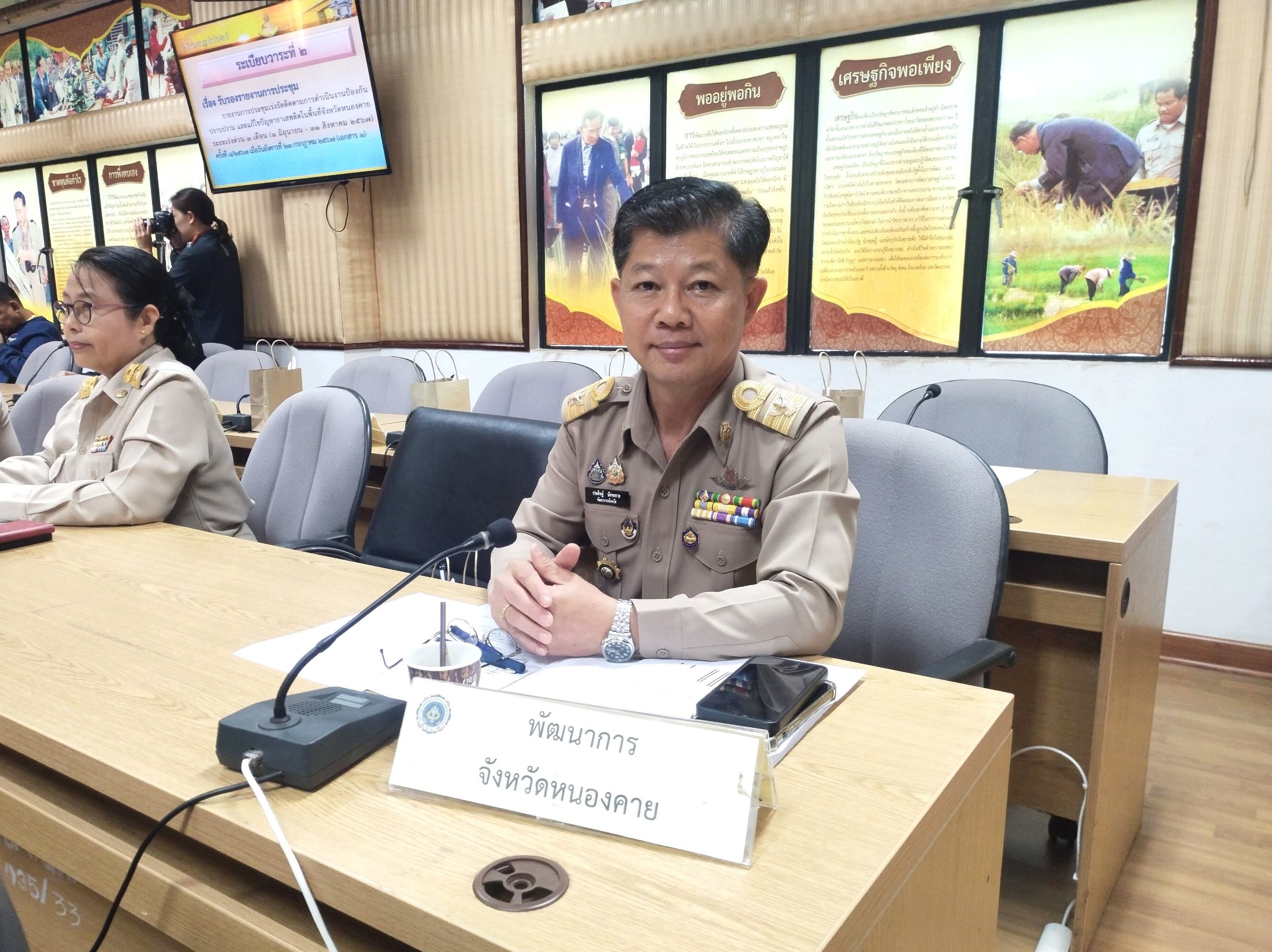 ในการนี้ นายประดิษฐ์ นัดทะยาย พัฒนาการจังหวัดหนองคาย ได้เข้าร่วมการประชุมดังกล่าว พร้อมนำเสนอผลการดำเนินงานหมู่บ้านป้องกันและแก้ไขปัญหายาเสพติด โดยกองทุนแม่ของแผ่นดินจังหวัดหนองคาย ให้ที่ประชุมรับทราบ