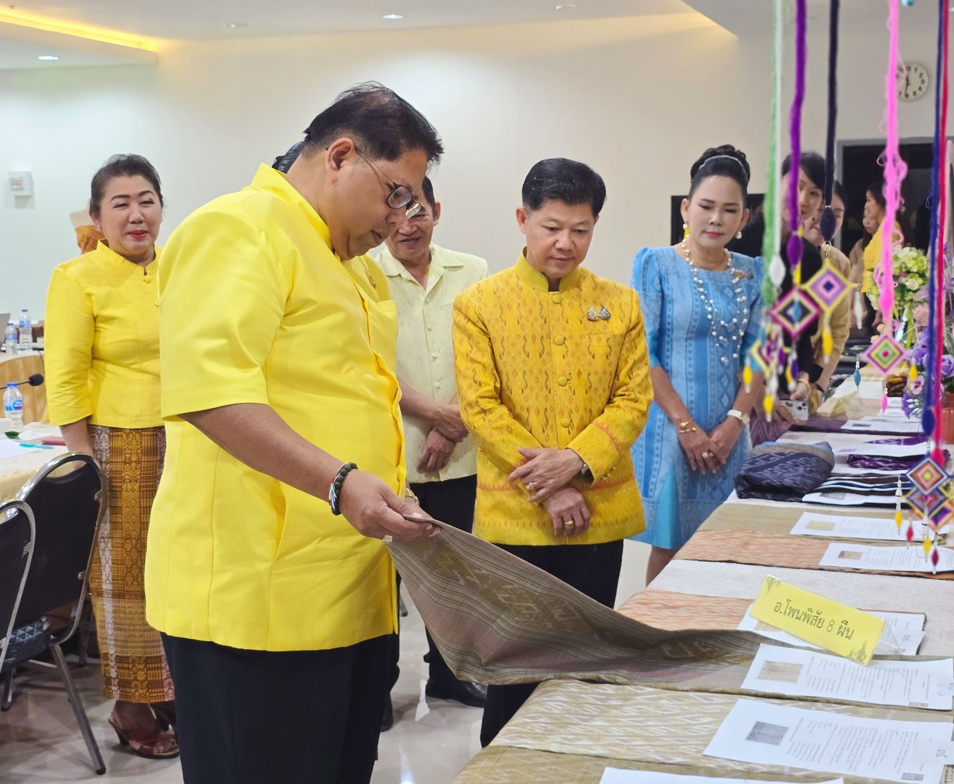วันที่ 21 สิงหาคม 2567 เวลา 11.00 น. ณ ห้องประชุมสำนักงานพัฒนาชุมชนจังหวัดหนองคาย ชั้น 1 ศาลากลางจังหวัดหนองคาย นายสมภพ สมิตะสิริ ผู้ว่าราชการจังหวัดหนองคาย เป็นประธานเปิดการประกวดผ้าลายพระราชทาน “ผ้าลายสิริวชิราภรณ์” และงานหัตถกรรม ระดับจังหวัด ประจำปี 2567 โดยมีนายประดิษฐ์ นัดทะยาย พัฒนาการจังหวัดหนองคาย กล่าวรายงานฯ และมีนายชาญชัย คงทัน รองผู้ว่าราชการจังหวัดหนองคาย นางวรรณวิไล กันเพ็ชร์ นางอ้อมขวัญ คงทัน รองประธานแม่บ้านมหาดไทยจังหวัดหนองคาย พร้อมด้วยคณะกรรมการฯ จากหน่วยงาน กลุ่ม องค์กรที่เกี่ยวข้อง ร่วมพิจารณา