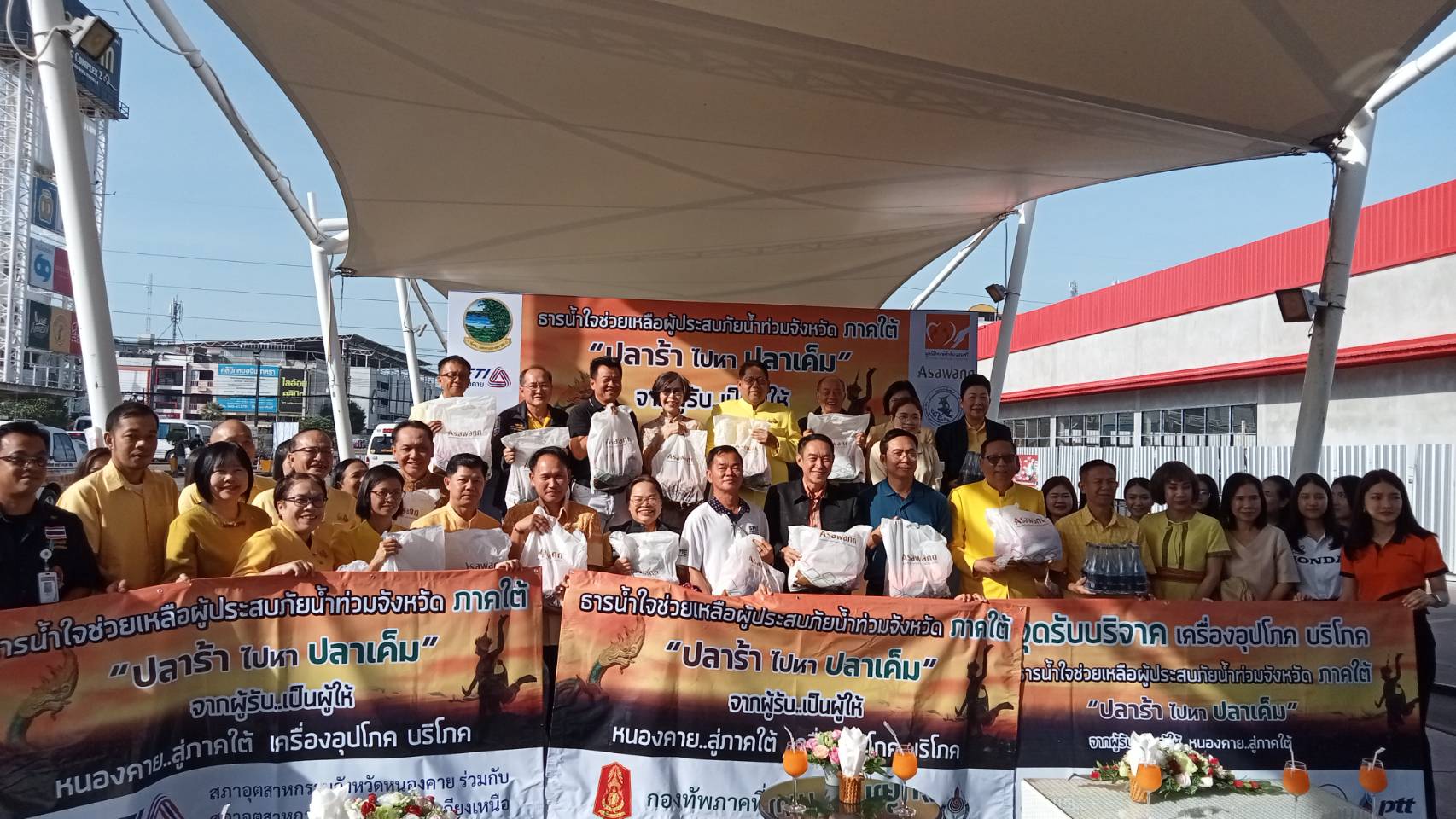 ในการนี้นายประดิษฐ์ นัดทะยาย พัฒนาการจังหวัดหนองคาย ได้ร่วมในกิจกรรมดังกล่าว ซึ่งสภาอุตสาหกรรมจังหวัดหนองคาย ร่วมกับมูลนิธิพงษ์ศักดิ์ ถนอมศรี และกลุ่มธุรกิจอัศวรรณ ได้เล็งเห็นถึงความเดือดร้อนของผู้ประสบภัยในภาคใต้ โดยได้จัดเตรียมถุงยังชีพ จำนวน 1,500 ชุด สิ่งของอุปโภค-บริโภค และสิ่งของที่ได้รับบริจาค รวมมูลค่ามากกว่า 3 แสนบาท เพื่อช่วยเหลือผู้ประสบภัยในพื้นที่ภาคใต้ทั้ง 3 จังหวัด ได้แก่ จังหวัดสงขลา , จังหวัดยะลา และจังหวัดปัตตานี