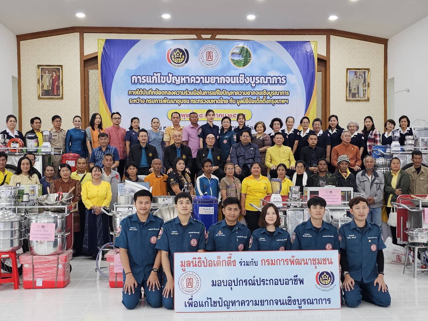 โครงการแก้ไขปัญหาความยากจนเชิงบูรณาการ สนับสนุนอุปกรณ์ประกอบอาชีพ ช่วยเหลือครัวเรือนยากจน ตามบันทึกข้อตกลงความร่วมมือแก้ไขปัญหาความยากจน ระหว่างกรมการพัฒนาชุมชน และมูลนิธิป่อเต็กตึ๊ง เพื่อสนับสนุนวัสดุอุปกรณ์การประกอบอาชีพมอบให้แก่ ครัวเรือนยากจน ให้สามารถประกอบอาชีพเลี้ยงตนเองและครอบครัว สอดคล้องกับปรัชญางานพัฒนาชุมชน คือทุกคนมีศักดิ์ศรีมีศักยภาพสามารถพัฒนาได้ ถ้าได้รับโอกาส โดยได้คัดเลือกครัวเรือนเป้าหมายที่ไม่ผ่านเกณฑ์ด้านรายได้จากระบบ TPMAP ที่สามารถพัฒนาได้ การประสานความร่วมมือในโครงการแก้ปัญหาความยากจนเชิงบูรณาการนี้ จะช่วยพัฒนาชุมชน สร้างอาชีพ สร้างชีวิต ให้กับครัวเรือนยากจนให้มีความรู้ มีทักษะ และมีวัสดุอุปกรณ์ไปประกอบอาชีพเลี้ยงตนเองและครอบครัว ทั้งนี้ก็เพื่อช่วยลดปัญหาความเหลื่อมล้ำในสังคม สร้างความสุขสู่ชุมชน สังคม และประเทศชาติอย่างยั่งยืนต่อไป