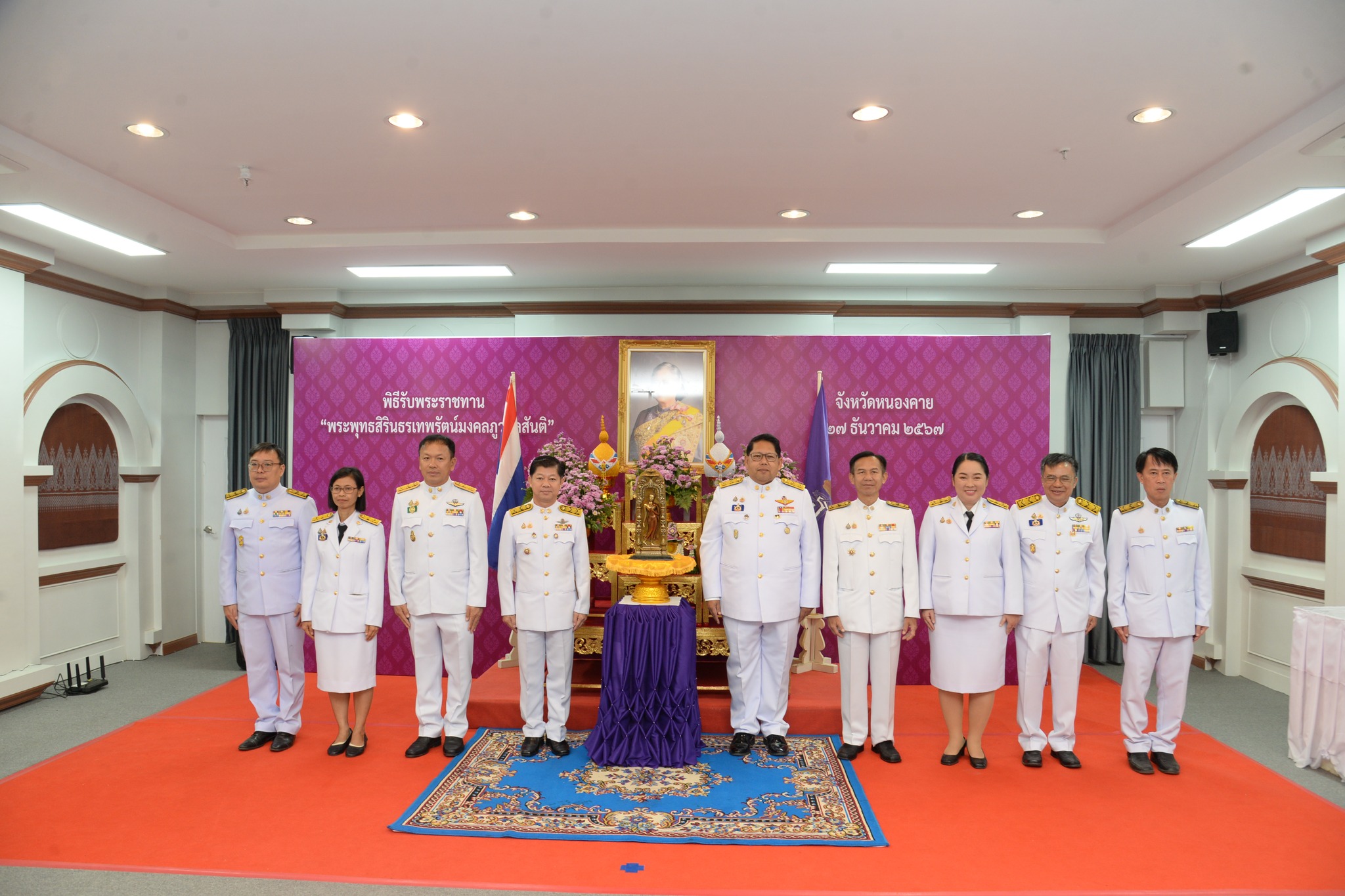 สมเด็จพระกนิษฐาธิราชเจ้า กรมสมเด็จพระเทพรัตนราชสุดาฯ สยามบรมราชกุมารี พระราชทานพระพุทธสิรินธรเทพรัตน์มงคลภูวดลสันติ ให้แก่ผู้ว่าราชการจังหวัดทุกจังหวัด โดยในวันนี้ (27 ธ.ค.67) เวลา 08.00 น. จังหวัดหนองคาย โดยนายสมภพ สมิตะสิริ ผู้ว่าราชการจังหวัดหนองคาย เป็นประธาน พร้อมด้วยนายรัฐศาสตร์ ชิดชู รองผู้ว่าราชการจังหวัดหนองคาย หัวหน้าส่วนราชการ จัดพิธีรับพระราชทาน “พระพุทธสิรินธรเทพรัตน์มงคลภูวดลสันติ” เบื้องหน้าพระฉายาลักษณ์ สมเด็จพระกนิษฐาธิราชเจ้า กรมสมเด็จพระเทพรัตนราชสุดาฯ สยามบรมราชกุมารี ณ ห้องประชุมพระเจ้าใหญ่องค์ตื้อ ชั้น 2 ศาลากลางจังหวัดหนองคาย
