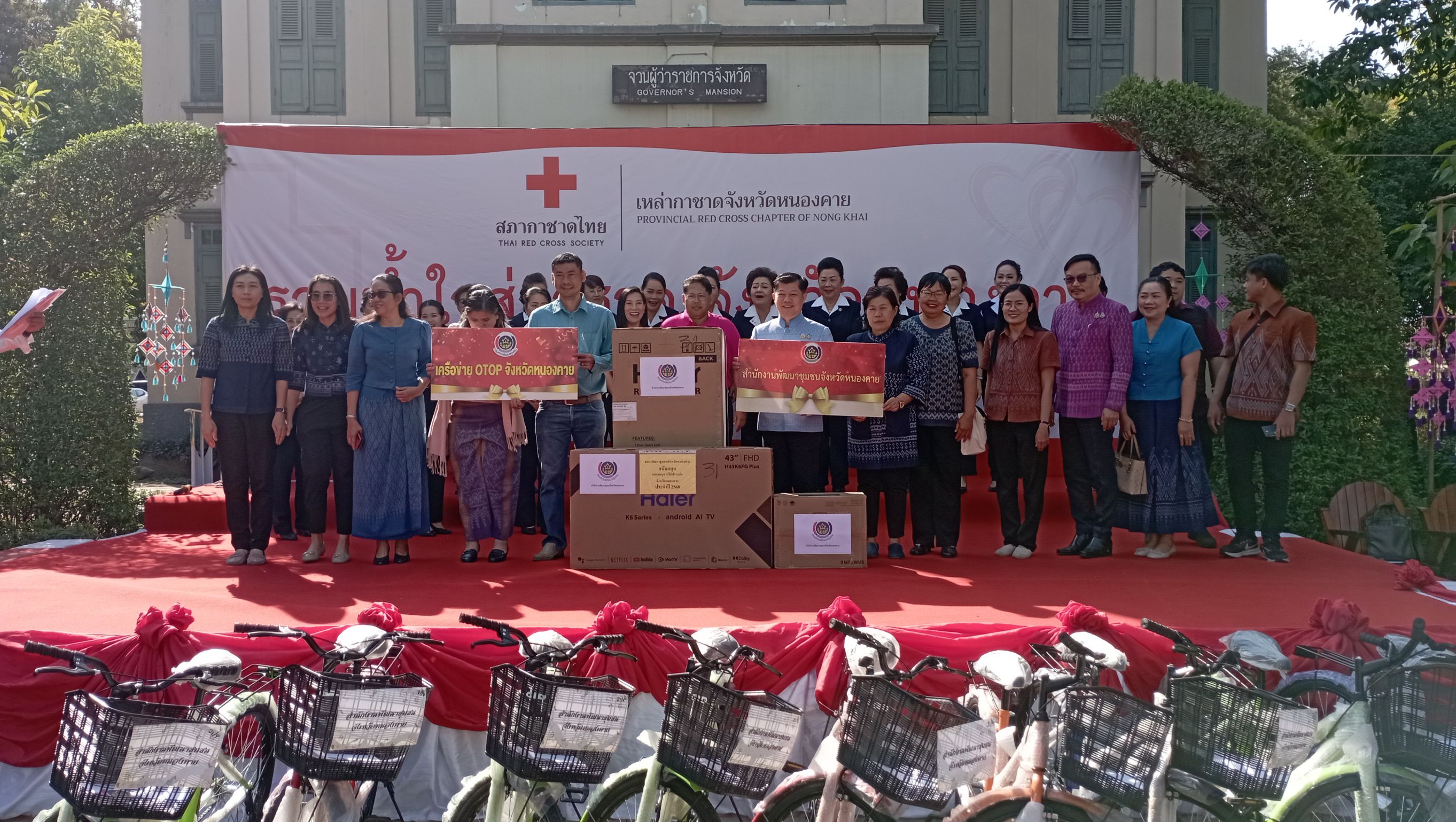 วันที่ 14 กุมภาพันธ์ 2568 จังหวัดหนองคาย และ อบจ.หนองคาย ได้ร่วมกันแถลงข่าว การจัดงาน “งานฉลองอนุสาวรีย์ปราบฮ่อ ใต้ร่มพระบารมี 198 ปี เมืองหนองคายและงานกาชาด พ.ศ. 2568” โดยมี นายสมภพ สมิตะสิริ ผู้ว่าราชการจังหวัดหนองคาย , พ.ต.อ.จามร อันดี รองผู้บังคับการตำรวจภูธรจังหวัดหนองคาย , นายอุรุยศ เอียสกุล นายกเทศมนตรีเมืองหนองคาย , นายเกรียงศักดิ์ ถวายชัย ประชาสัมพันธ์จังหวัดหนองคาย และนายนำศิลป์ วิเศษ รองปลัด อบจ.หนองคาย เป็นผู้ร่วมแถลงข่าว จากนั้นก็ได้จัด “วันรวมน้ำใจสู่กาชาด ประจำปี 2568” ต่อเนื่องกันไป โดยได้เปิดรับบริจาคเงิน และสิ่งของเครื่องใช้จากหน่วยงานราชการ ภาคเอกชน องค์กรปกครองส่วนท้องถิ่น และประชาชนทั่วไป เพื่อใช้เป็นของรางวัลภายในร้านมัจฉากาชาด “งานฉลองอนุสาวรีย์ปราบฮ่อ ใต้ร่มพระบารมี 198 ปี เมืองหนองคายและงานกาชาด พ.ศ. 2568” ที่จะมีขึ้นในระหว่างวันที่ 5 – 13 มีนาคม 2568 ซึ่งตลอดทั้งวันมีหน่วยงานนำสิ่งของเครื่องใช้ เครื่องอุปโภคบริโภค เครื่องใช้ไฟฟ้า รถจักรยาน รถจักรยานยนต์ มามอบให้จำนวนมาก มี นายสมภพ สมิตะสิริ ผู้ว่าราชการจังหวัดหนองคาย / นายกเหล่ากาชาดจังหวัดหนอคาย , นางวรรณวิไล กันเพ็ชร์ รองนายกเหล่ากาชาดจัดหนองคาย , นางอ้อมขวัญ คงทัน รองนายกเหล่ากาชาดจังหวัดหนองคาย พร้อมคณะกรรมการเหล่ากาชาดจังหวัดหนองคาย เป็นผู้รับมอบ