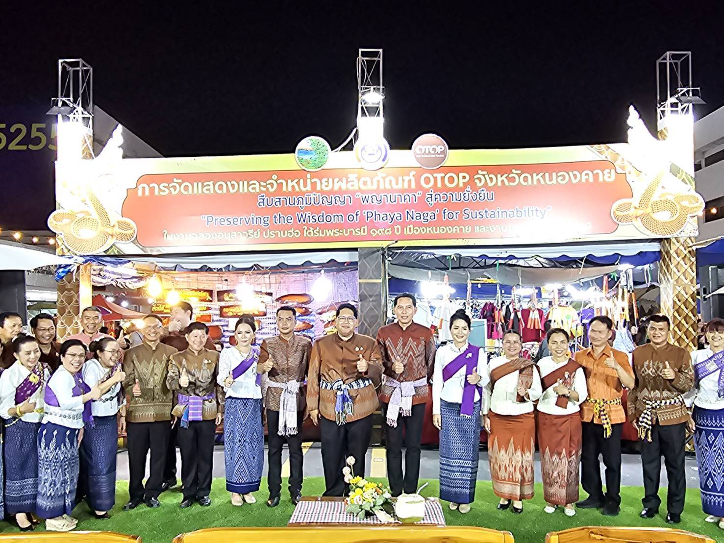 นายประดิษฐ์ นัดทะยาย พัฒนาการจังหวัดหนองคาย กล่าวว่า สำนักงานพัฒนาชุมชนจังหวัดหนองคาย ร่วมกับภาครัฐ ภาคเอกชน และเครือข่าย OTOP จังหวัดหนองคาย จำหน่ายสินค้าผลิตภัณฑ์ชุมชน (OTOP) ภายใต้ ชื่องาน สืบสานภูมิปัญญา “พญานาคา” สู่ความยั่งยืน “Preserving the Wisdom of ‘Phaya Naga’ for Sustainability” โดยมีวัตถุประสงค์เพื่อเพิ่มช่องทางการจำหน่ายสินค้า ให้แก่ผู้ประกอบการ OTOP/เกษตรกร เพื่อให้ประชาชนและนักท่องเที่ยวได้ซื้อสินค้า OTOP ที่มาจากทั่วประเทศ และเป็นการประชาสัมพันธ์สินค้าที่เกิดจากภูมิปัญญาท้องถิ่นทั่วประเทศ