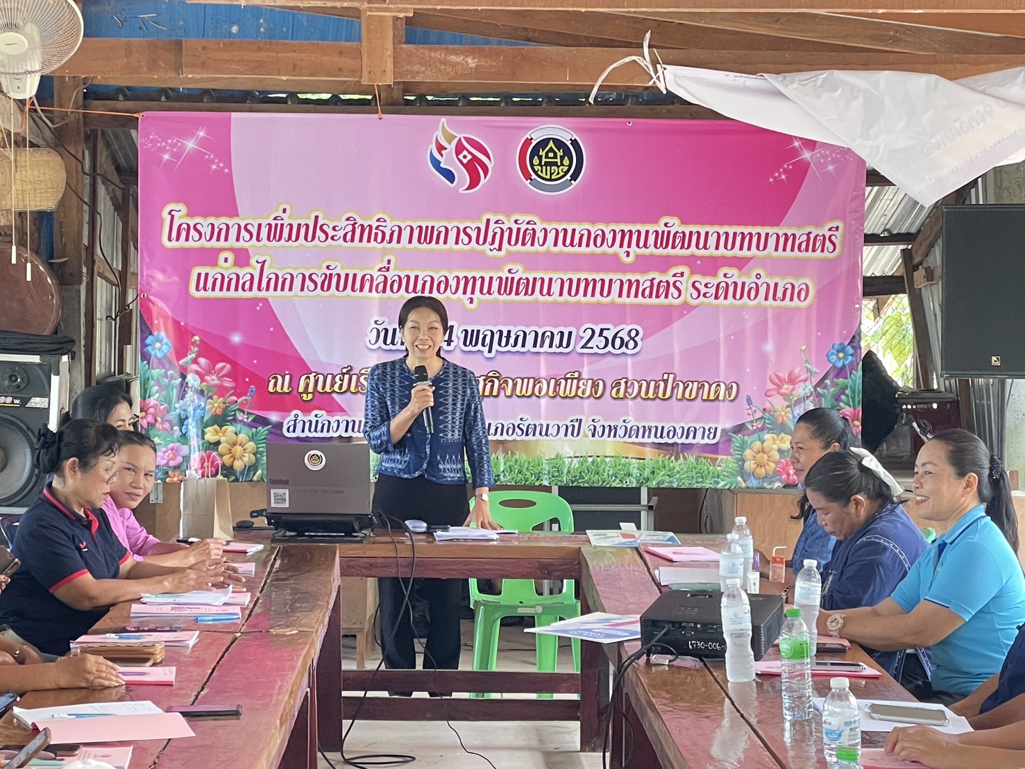 🗓️วันที่ 14 พฤษภาคม 2568 เวลา 09.30 น. นายสุรชาติ ตันติปาลี ผอ.กลุ่มงานส่งเสริมการพัฒนาชุมชน รักษาราชการแทนพัฒนาการจังหวัด มอบหมายให้ นางสาวประภัสสร รัตนนาลี ผอ.กลุ่มงานประสานฯ พร้อมด้วยนายวุฒิชัย โยธามาตย์ นิติกรกองทุนฯ เป็นวิทยากรบรรยายให้ความรู้เกี่ยวกับการดำเนินงานและกฎหมายที่เกี่ยวข้องกับกองทุนพัฒนาบทบาทสตรี ในโครการเพิ่มประสิทธิภาพการปฏิบัติงานกองทุนพัฒนาบทบาทสตรี แก่กลไกการขับเคลื่อนกองทุนพัฒนาบทบาทสตรี ระดับอำเภอ ณ ศูนย์เรียนรู้เศรษฐกิจพอเพียง สวนป่าขาดง หมู่ที่ 4 ต.บ้านต้อน อ.รัตนวาปี จ.หนองคาย