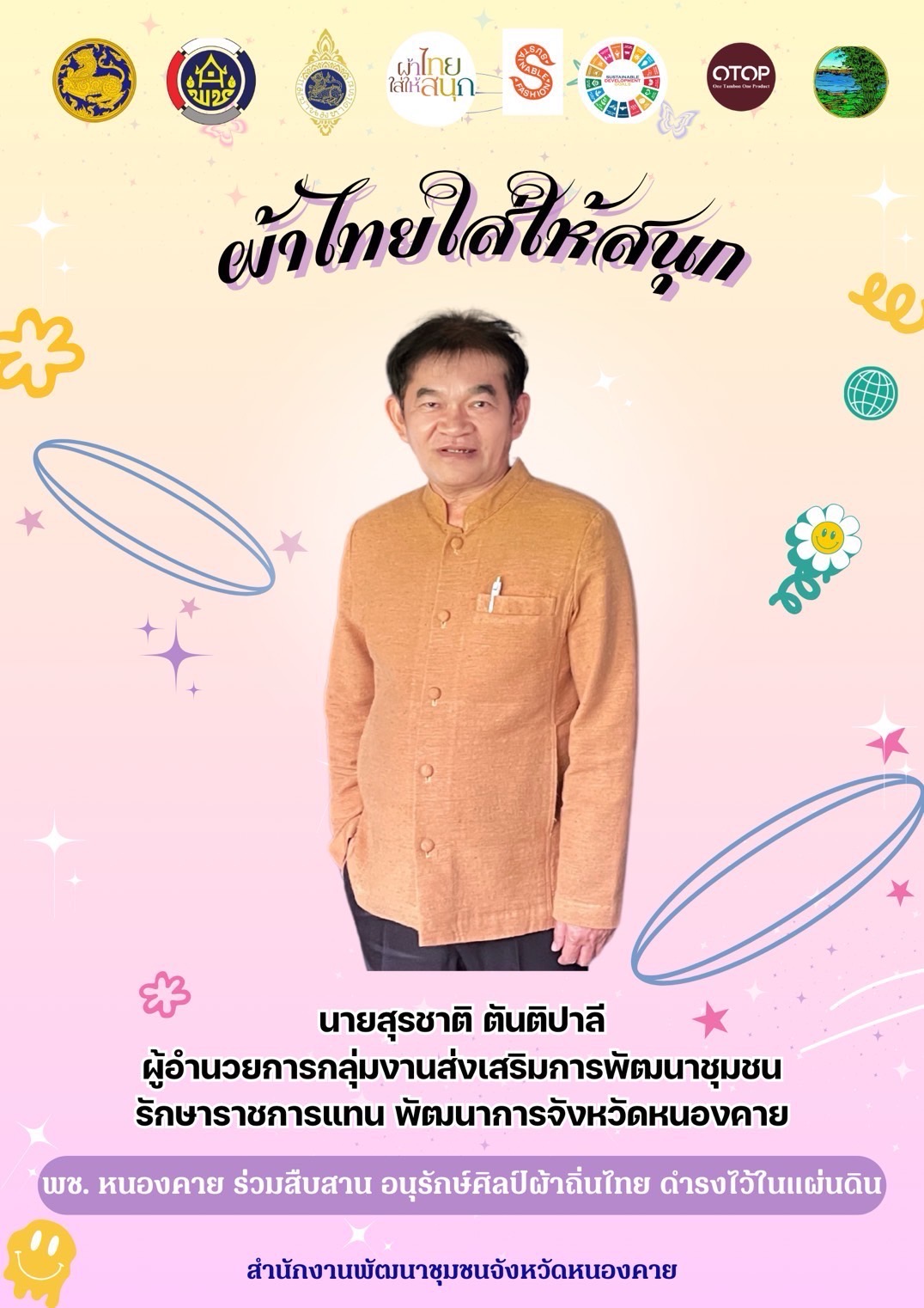 สำนักงานพัฒนาชุมชนจังหวัดหนองคาย และเครือข่ายพัฒนา เชิญชวนสวมใส่ผ้าไทย เพื่อร่วมอนุรักษ์ภูมิปัญญาผ้าไทย ผ้าพื้นเมือง ส่งเสริมอาชีพการทอผ้า สร้างงานให้กลุ่มผู้ผลิตชุมชน กระตุ้นและส่งเสริมเศรษฐกิจฐานรากด้วยการสวมใส่ผ้าไทย✨
