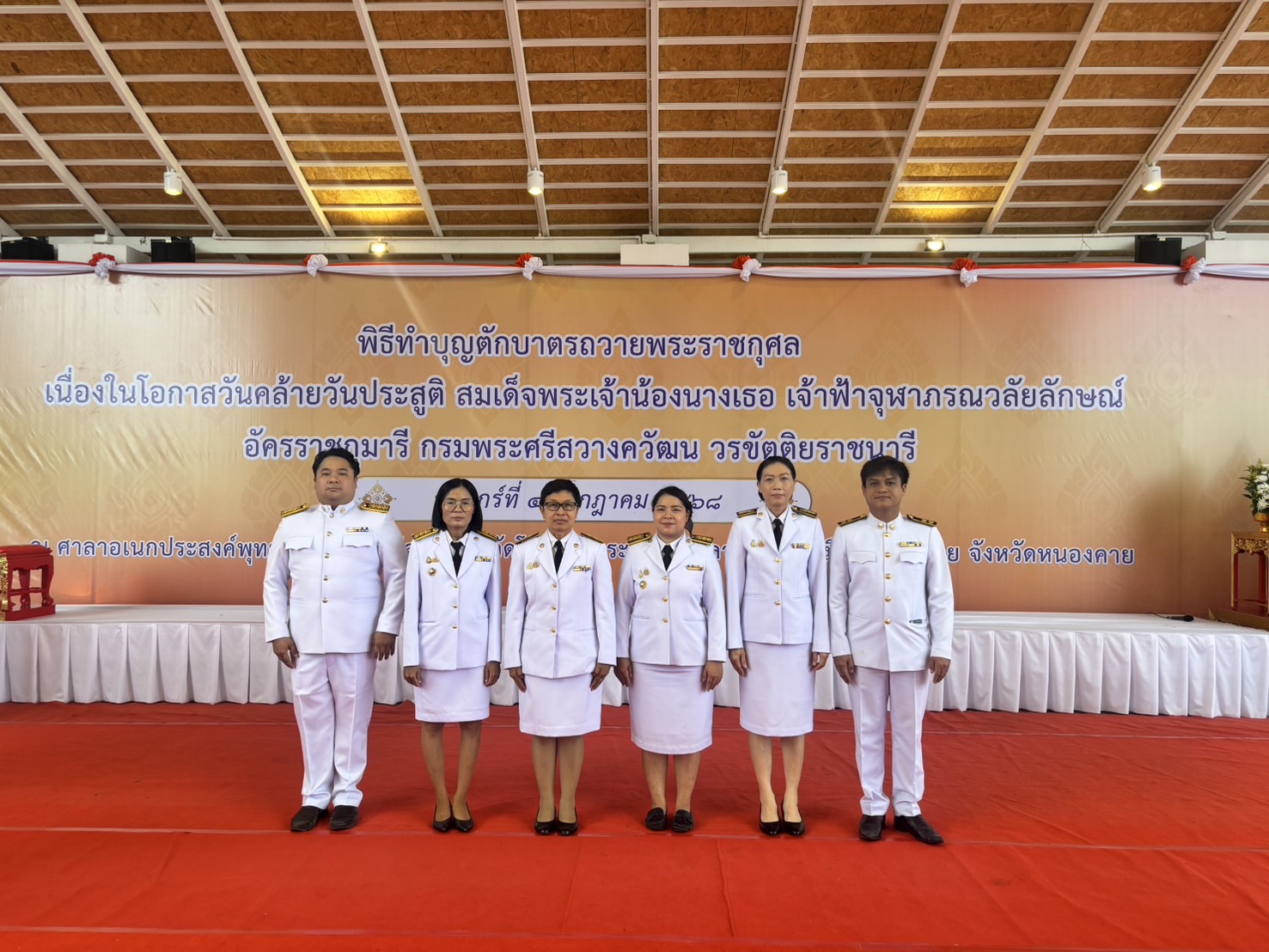 วันที่ 4 กรกฎาคม 2568 เวลา 07.30 น. จังหวัดหนองคาย จัดพิธีทำบุญตักบาตรถวายพระราชกุศล เนื่องในโอกาสวันคล้ายวันประสูติ สมเด็จพระเจ้าน้องนางเธอ เจ้าฟ้าจุฬาภรณวลัยลักษณ์ อัครราชกุมารี กรมพระศรีสวางควัฒน วรขัตติยราชนารี โดยมีนายสมภพ สมิตะสิริ ผู้ว่าราชการจังหวัดหนองคาย เป็นประธานฝ่ายฆราวาส และมีพระเทพวชิรคุณ, รศ.ดร. เจ้าคณะจังหวัดหนองคาย เจ้าอาวาสวัดโพธิ์ชัย พระอารามหลวง เป็นประธานฝ่ายสงฆ์ พร้อมนำพระสงฆ์และสามเณร จำนวน 68 รูปออกรับบิณฑบาต ณ วัดโพธิ์ชัย พระอารามหลวง อำเภอเมือง จังหวัดหนองคาย