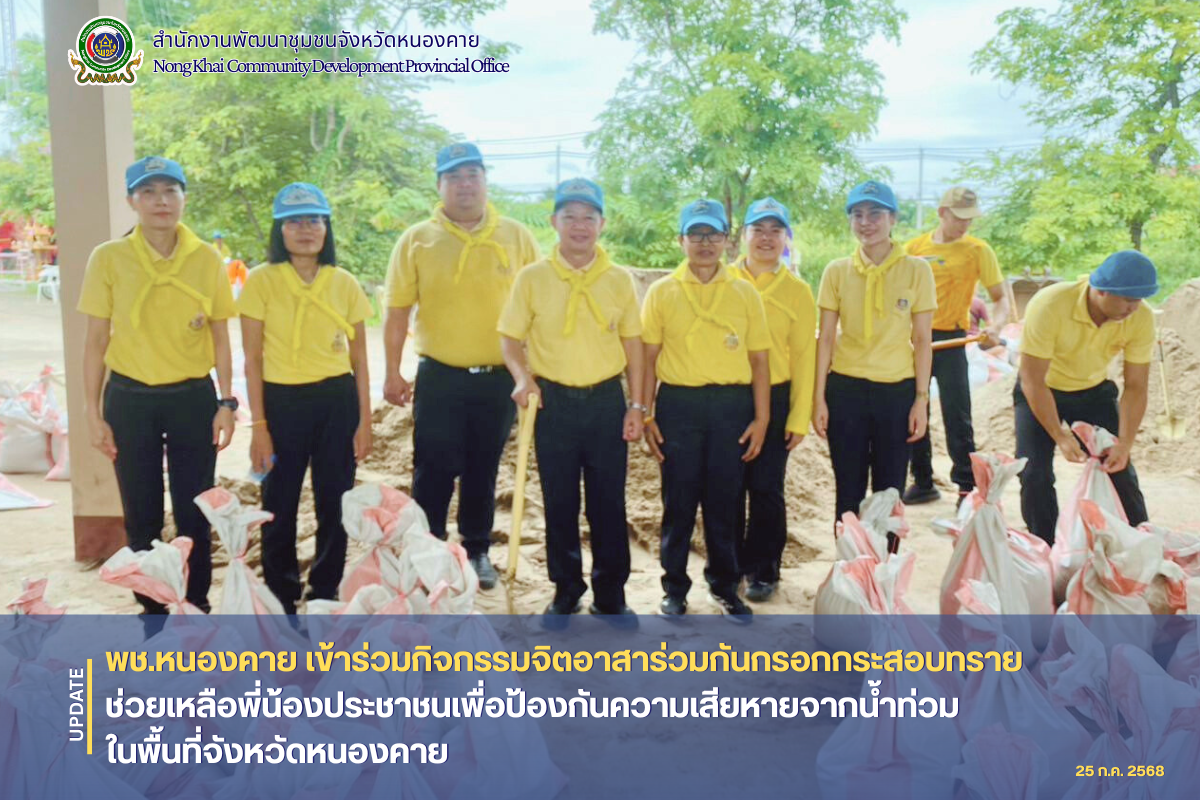 พช.หนองคาย เข้าร่วมกิจกรรมจิตอาสาร่วมกันกรอกกระสอบทรายช่วยเหลือพี่น้องประชาชนเพื่อป้องกันความเสียหายจากน้ำท่วมในพื้นที่จังหวัดหนองคาย