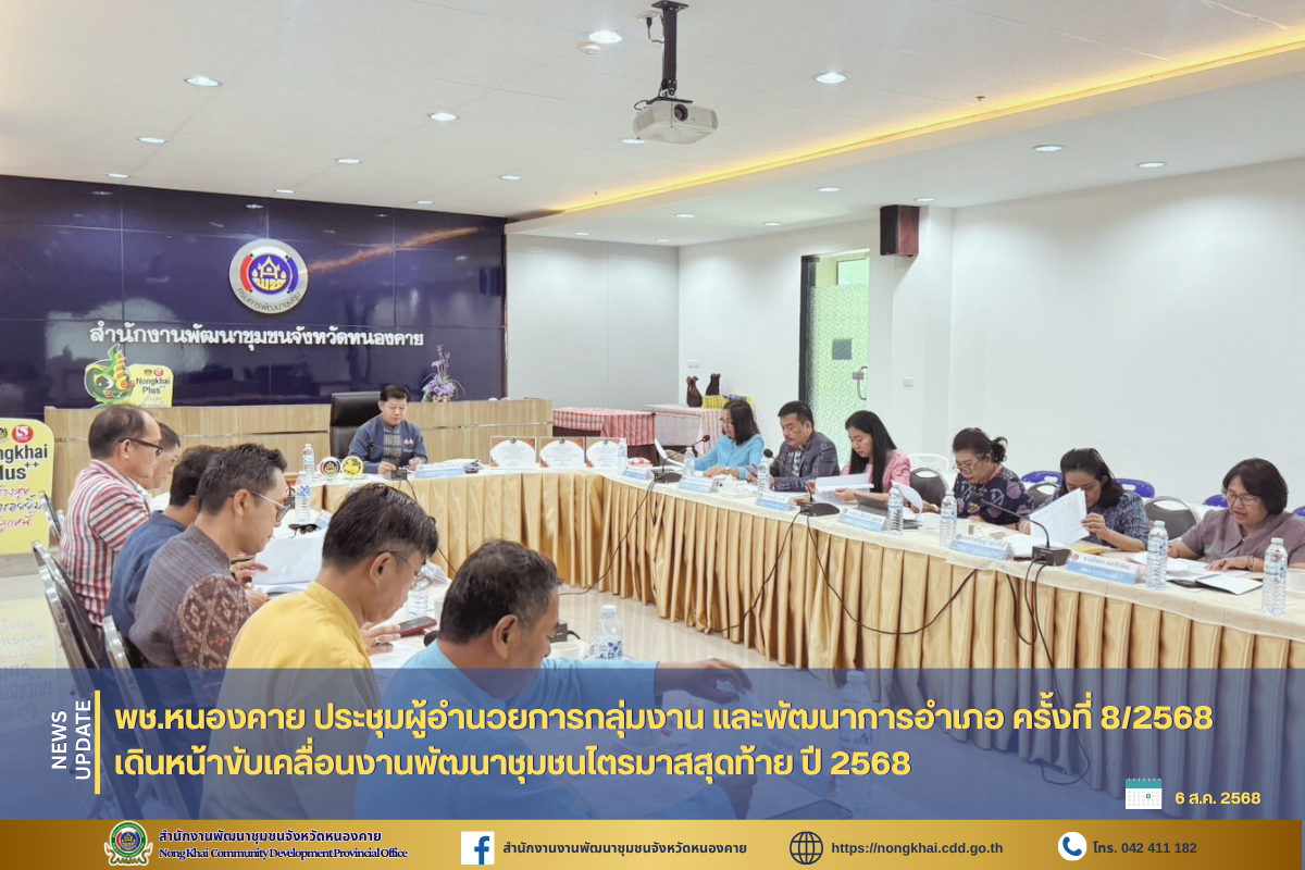 วันที่ 6 สิงหาคม 2568 ณ ห้องประชุมสำนักงานพัฒนาชุมชนจังหวัดหนองคาย ชั้น 1 ศาลากลางจังหวัดหนองคาย