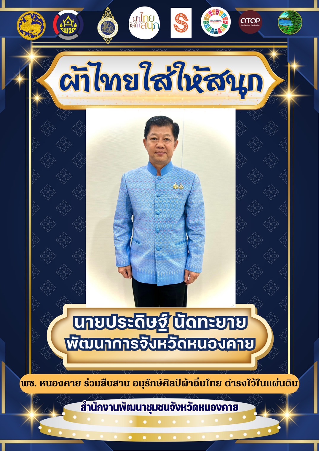 สำนักงานพัฒนาชุมชนจังหวัดหนองคาย ร่วมกับหัวหน้าส่วนราชการระดับจังหวัด สำนักงานพัฒนาชุมชนอำเภอ หัวหน้าส่วนราชการระดับอำเภอ เจ้าหน้าที่พัฒนาชุมชน และภาคีเครือข่ายการพัฒนา เชิญชวนสวมใส่ผ้าไทย เพื่อร่วมอนุรักษ์ภูมิปัญญาผ้าไทย ผ้าพื้นเมือง ส่งเสริมอาชีพการทอผ้า สร้างงานให้กลุ่มผู้ผลิตชุมชน กระตุ้นและส่งเสริมเศรษฐกิจฐานรากด้วยการสวมใส่ผ้าไทย✨