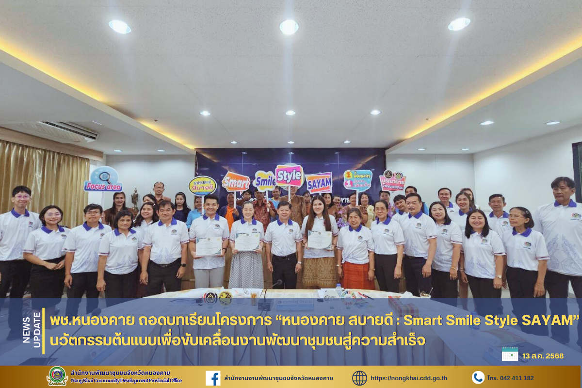 พช.หนองคาย ถอดบทเรียนโครงการ “หนองคาย สบายดี : Smart Smile Style SAYAM” นวัตกรรมต้นแบบเพื่อขับเคลื่อนงานพัฒนาชุมชนสู่ความสำเร็จ