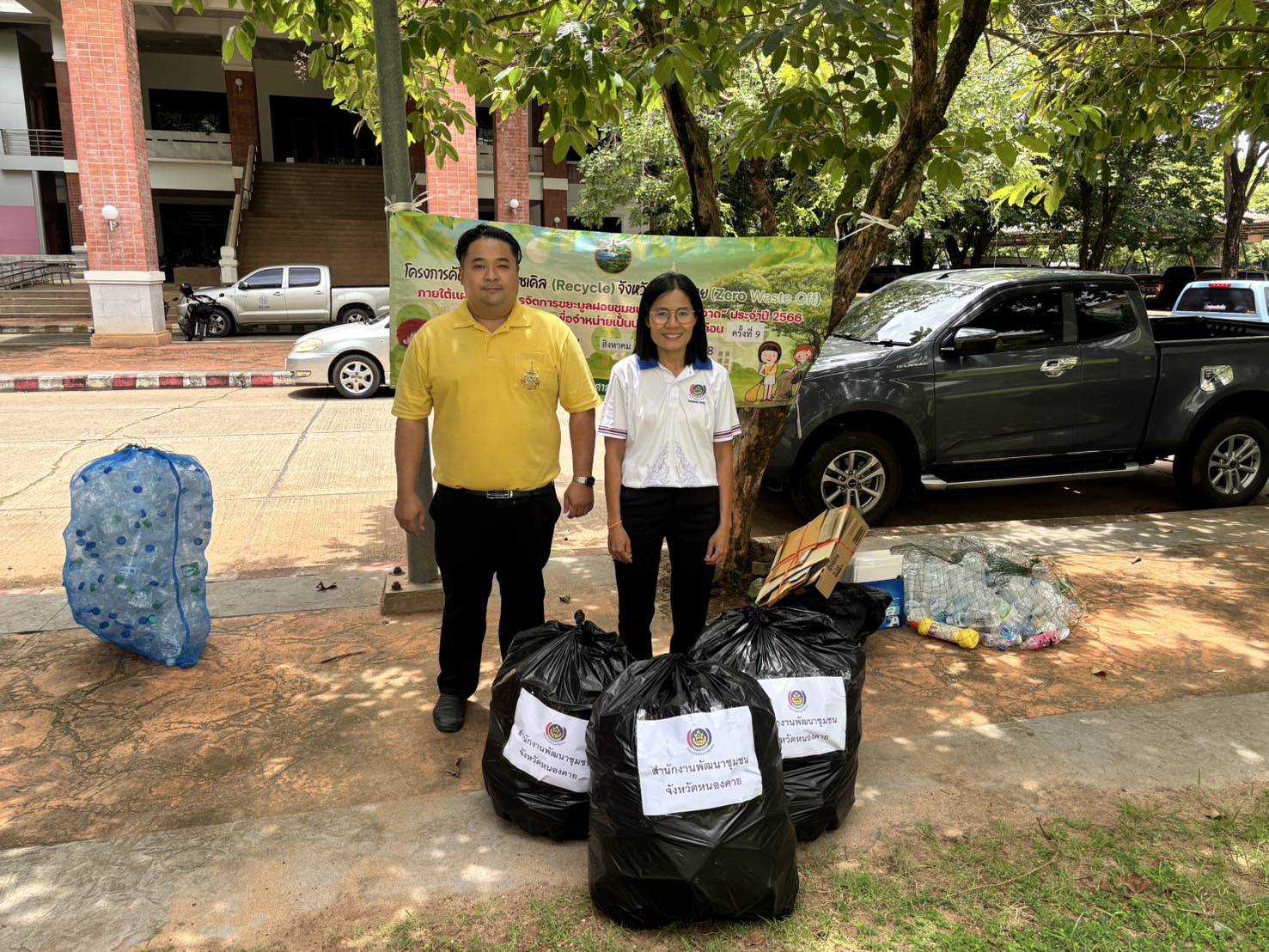 สำนักงานพัฒนาชุมชนจังหวัดหนองคายร่วมกิจกรรมคัดแยกขยะเพื่อรีไซเคิล สนับสนุนการใช้น้อย ใช้ซ้ำ และนำกลับไปใช้ใหม่
