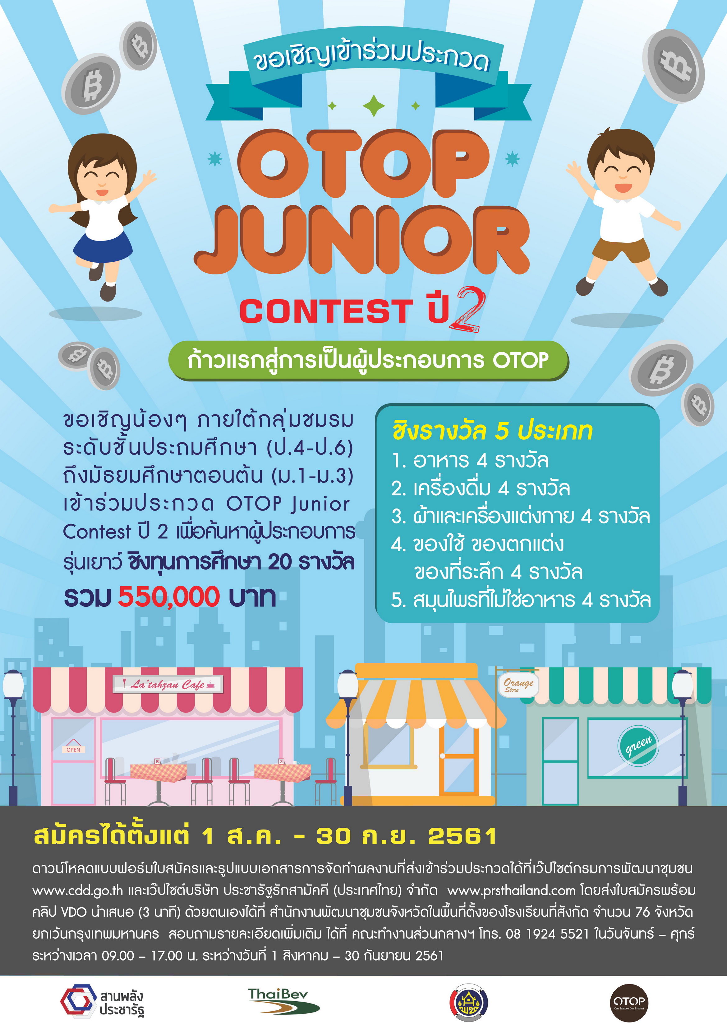 ขอเชิญเข้าร่วมประกวด OTOP Junior Contest ปี 2 ก้าวแรกสู่การเป็นผู้ประกอบการ OTOP 14 สิงหาคม 61 / 15:26 น. ดาวน์โหลดเอกสาร (Visited 1 times, 1 visits today)